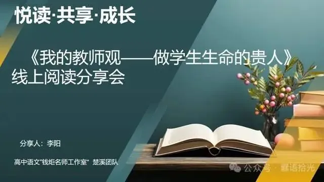 “楚溪”团队10月读书分享:围绕朱永新教授《我的教师观》,四位老师的分享角度各异,思想深刻:范丽琛老师以“借我一双‘慧眼’”为题,从“向内”(成为科研型教师)、“向外”(看见每一个学生)、“向未来”(让语文回归生活)三个维度,结合自身《乡土中国》教学、“家乡文化寻根”、“城市记忆”写作等案例,阐述了教师的专业成长路径。段晓芳老师聚焦“走下‘神坛’”,以诗意语言反思教师角色,倡导教师应做“身心健康、热爱生活”的完整的人,并以自身看画展、与孩子共读的经历融入教学为例,说明“生活的烟火气才是语文教育的活水”。李阳老师系统构建了“成为‘贵人’”的理念与行动框架,提出以“贵人”之魂、“理想”之翼、“爱与信”之力为基石,以专业阅读写作、幸福教室打造、日常互动智慧为实践法宝。丁瑜老师真诚分享了从“角色扮演”到“成为自己”的心路历程,强调“共情、共勉、共长”的师生关系。钱炬老师在总结中画龙点睛:“为自己找到一个不抱怨的理由,这件事情本来就很酷。” 这场分享会是一次深刻的教育理想共鸣与职业倦怠的对抗。