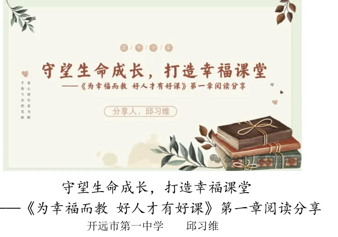 “清渠”团队12月读书分享:构筑精神家园“理想星空”。改变以往泛读分享模式,采用“团队领读+主旨发言+实践联结”的深度模式。邱习维老师领读《为幸福而教》,引发了关于“教师职业幸福与专业成就关系”的热烈辩论。这些讨论直击心灵,有效对抗职业倦怠,重塑了教育理想的内驱力。12月5日,开远一中团队以线上分享的形式,围绕王开东老师《为幸福而教 好人才有好课》一书展开深度研讨。本次读书分享活动由该团队的孔令勇老师主持,邱习维、吴盼、刘涛、司海燕四位教师结合自身教学实践与反思,从不同维度解读教育本质,分享育人智慧,为线上参与的教育同仁呈现了一场兼具温度与深度的思想盛宴。