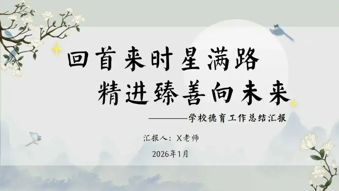 2025-2026学年第一学期学校德育工作总结ppt:回首来时星满路。