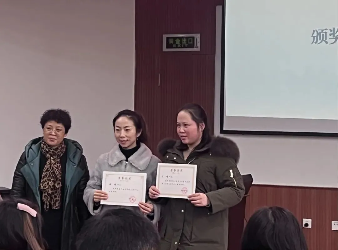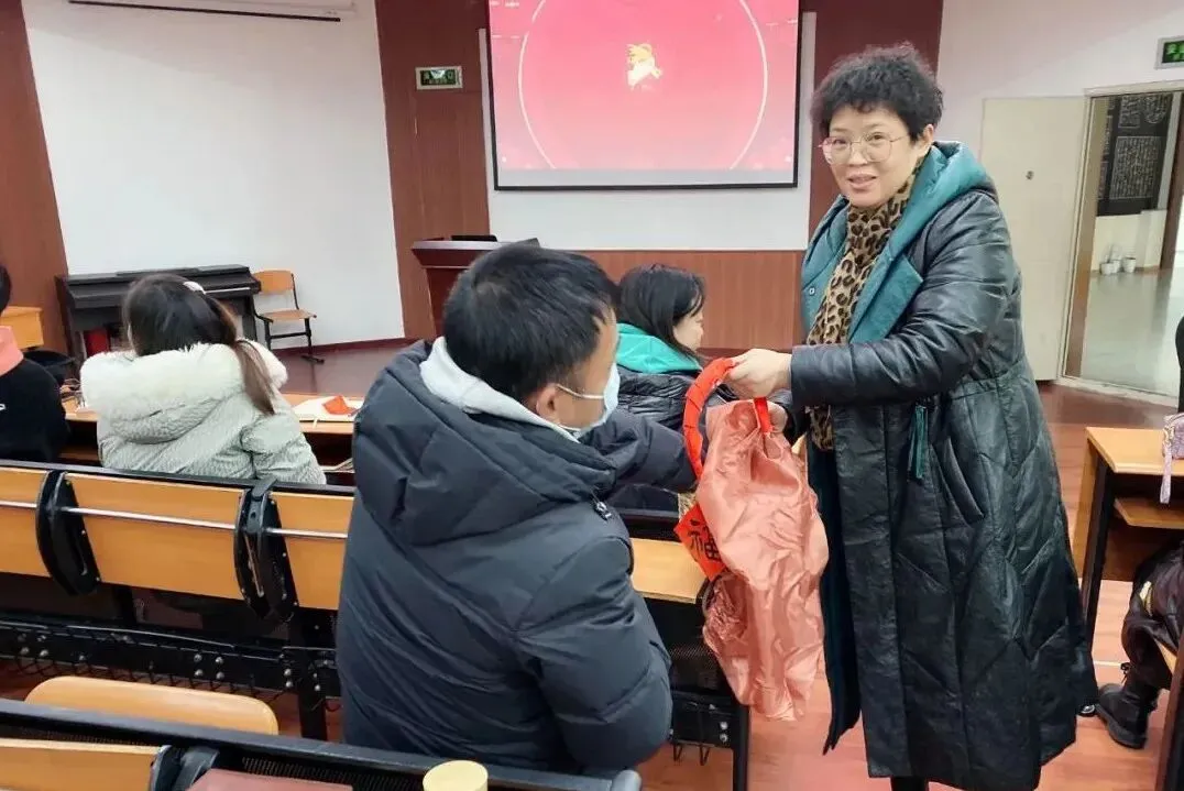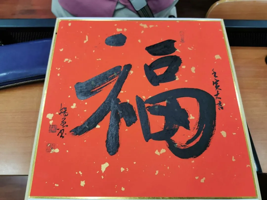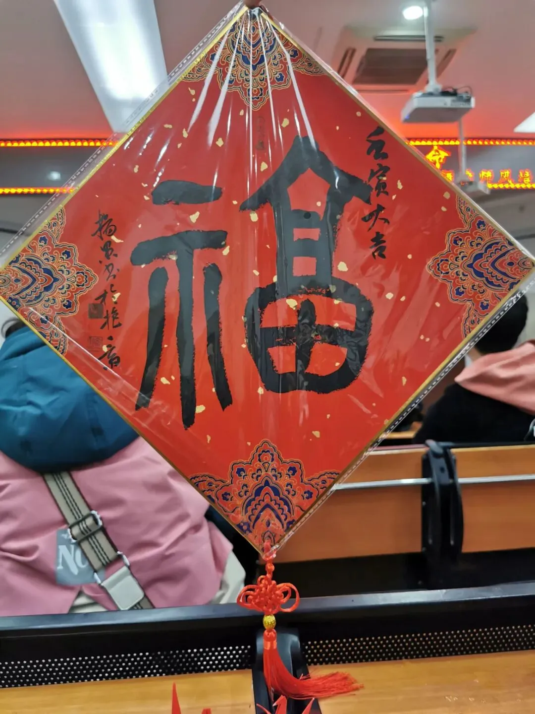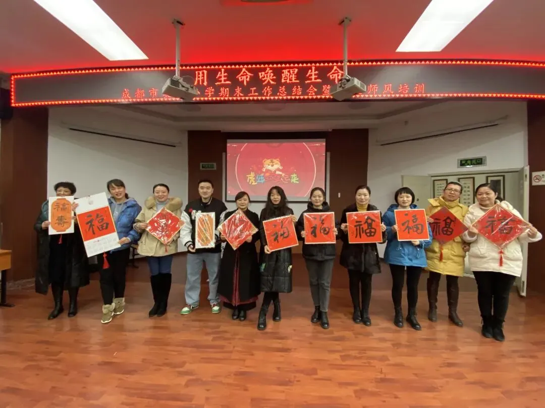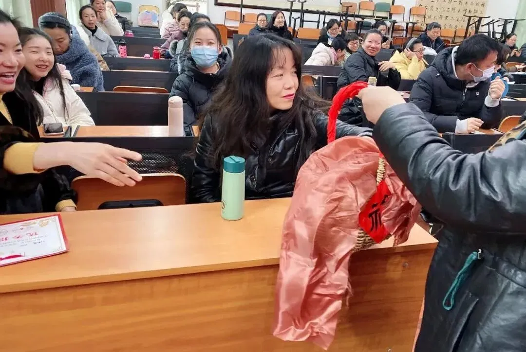 在总结会的最后阶段,教务部门代表学校为全校教职工新春送“福”。老师们纷纷从邓校长的“福”篮里抽取红签。幸运教师们获得了杨愚、郭萍老师利用业余时间用心书写的新春“福”字,愿大家来年工作顺利,家庭安康。