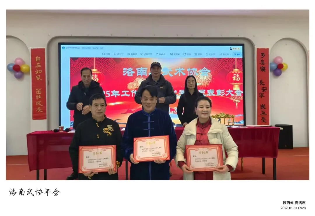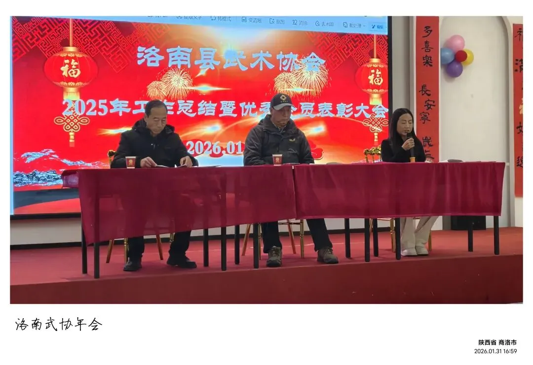 2026年1月31日下午4:30分,“洛南县武术协会2025年工作总结暨优秀会员表彰大会”在金江广场万福楼酒店隆重举行。
