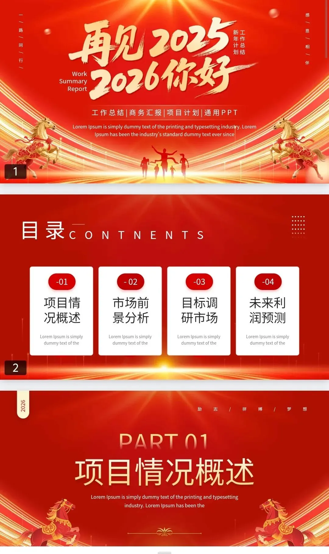 当前位置:首页>工作总结>2026年马年工作计划、商务汇报、项目计划、年终工作总结、通用PPT模板合集(免费下载)