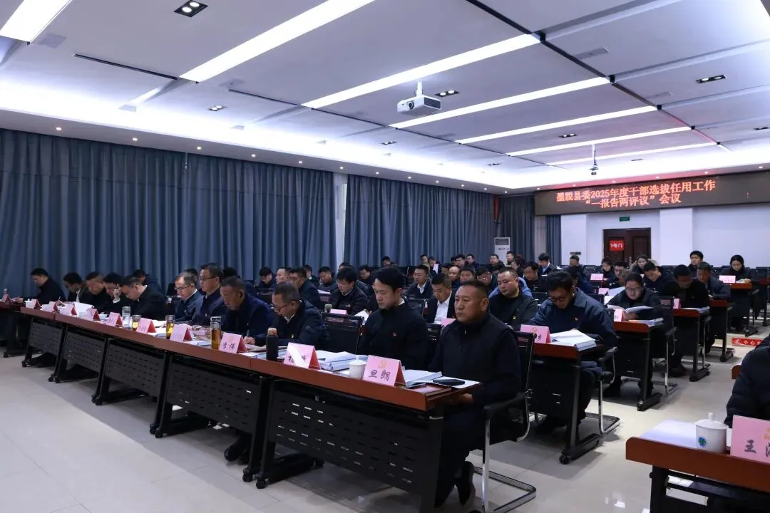 县“四大班子”在家领导、法检“两长”,各乡(镇)党政正职、县直部门主要负责人及部分县级党代表、人大代表、政协委员参加会议。与会人员认真听取了报告,对县委2025年度干部选拔任用工作及新提拔任用干部进行了客观公正的民主评议。