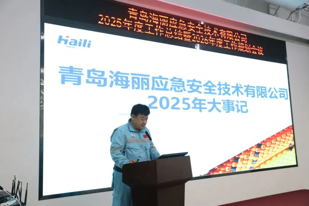 公司副总经理王雨辰带领大家共同回顾了2025年公司发展的大事记。一帧帧画面、一个个事件,串联起全体海丽应急人并肩奋斗的成长轨迹,也见证了公司在应急安全领域的坚实步履。