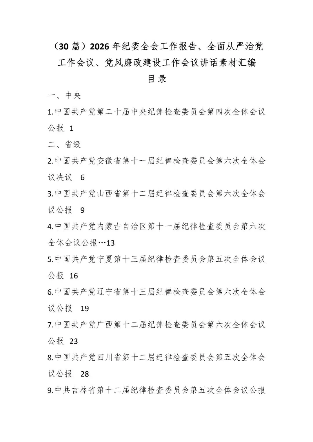 (30篇)2026年纪委全会工作报告、全面从严治党工作会议、党风廉政建设工作会议讲话素材汇编