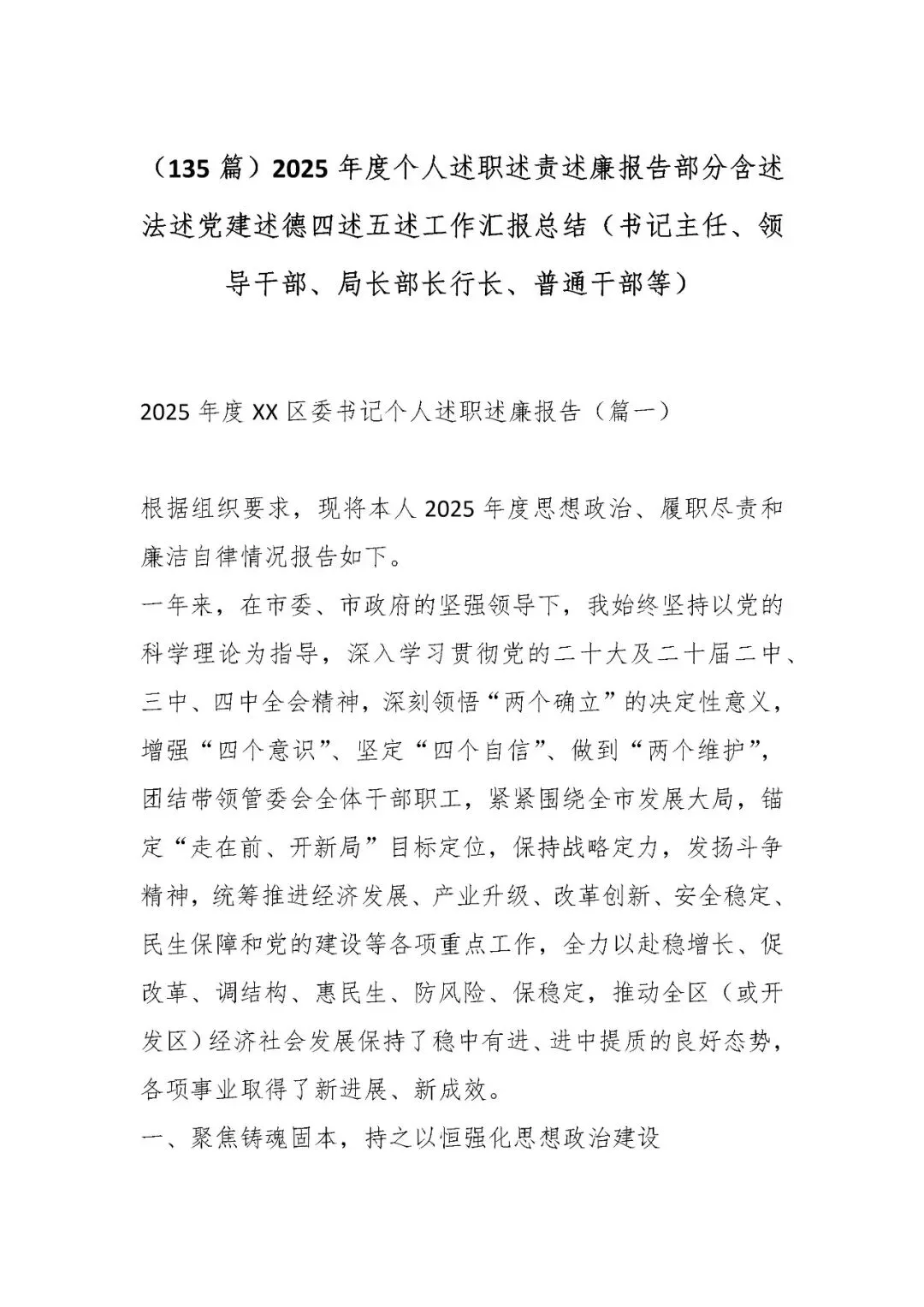 (135篇)2025年度个人述职述责述廉报告部分含述法述党建述德四述五述工作汇报总结(书记主任、领导干部、局长部长行长、普通干部等)