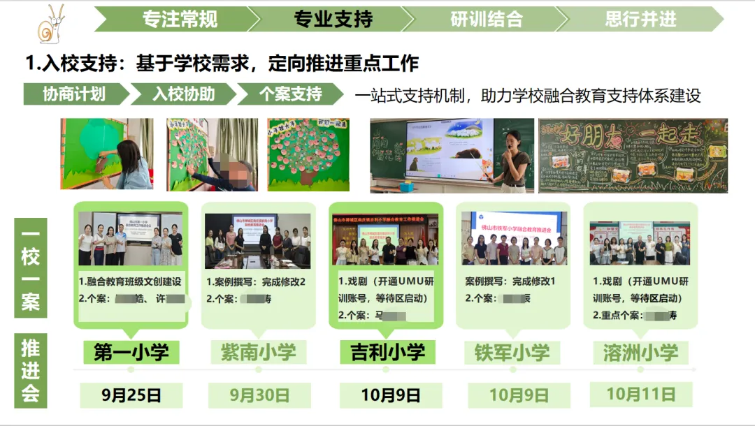 以“学校需求为导向、学生发展为核心”,构建“协商计划、入校协助、个案支持”的一站式支持机制,助力学校融合教育支持体系建设。