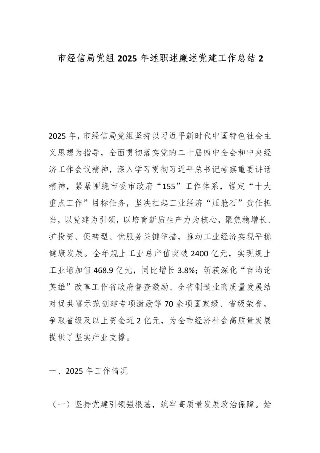 >市经信局党组2025年述职述廉述党建工作总结2