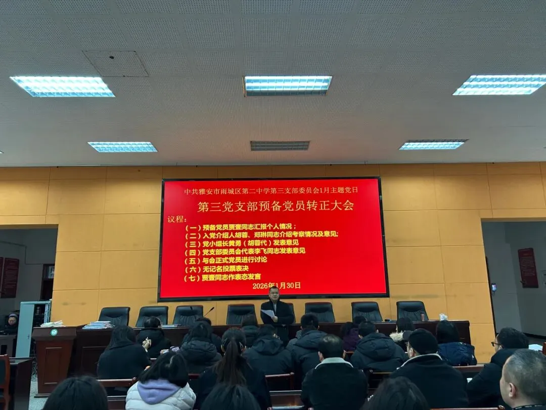 活动伊始,第一、第二、第三支部分别召开了支部大会。会上,刘婕等3位预备党员宣读转正申请,汇报预备期间的思想动态与实践表现,深刻表达对党的忠诚与为教育事业奉献的决心。各支部党员充分讨论并进行无记名投票,一致同意接收预备党员转为正式党员。新党员的加入,为学校党组织注入了新鲜活力,进一步强化了基层党组织的战斗堡垒作用。