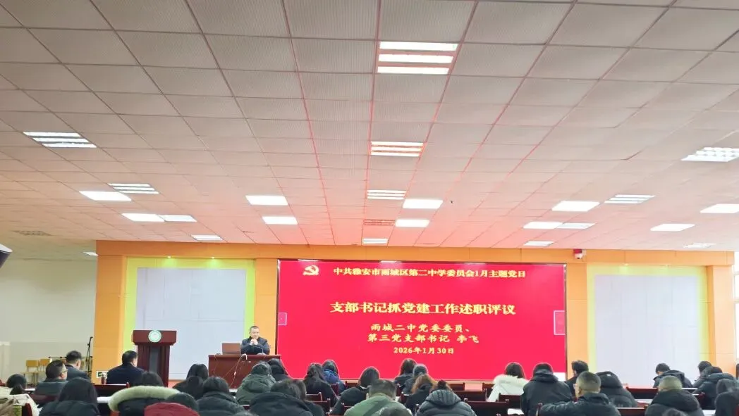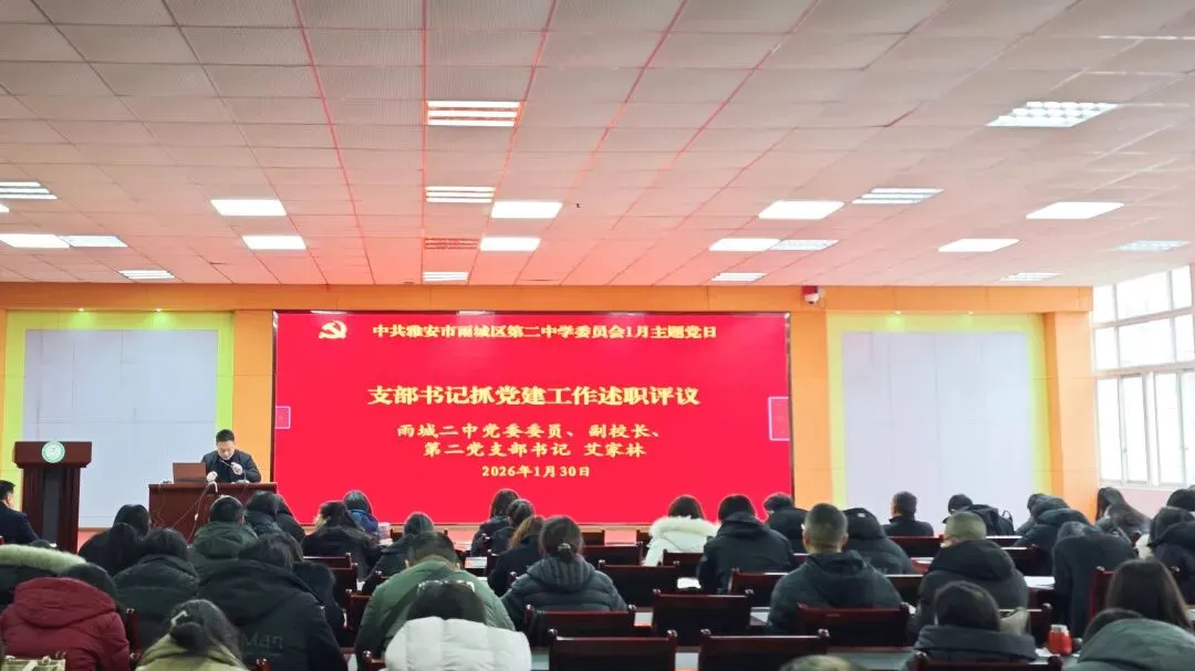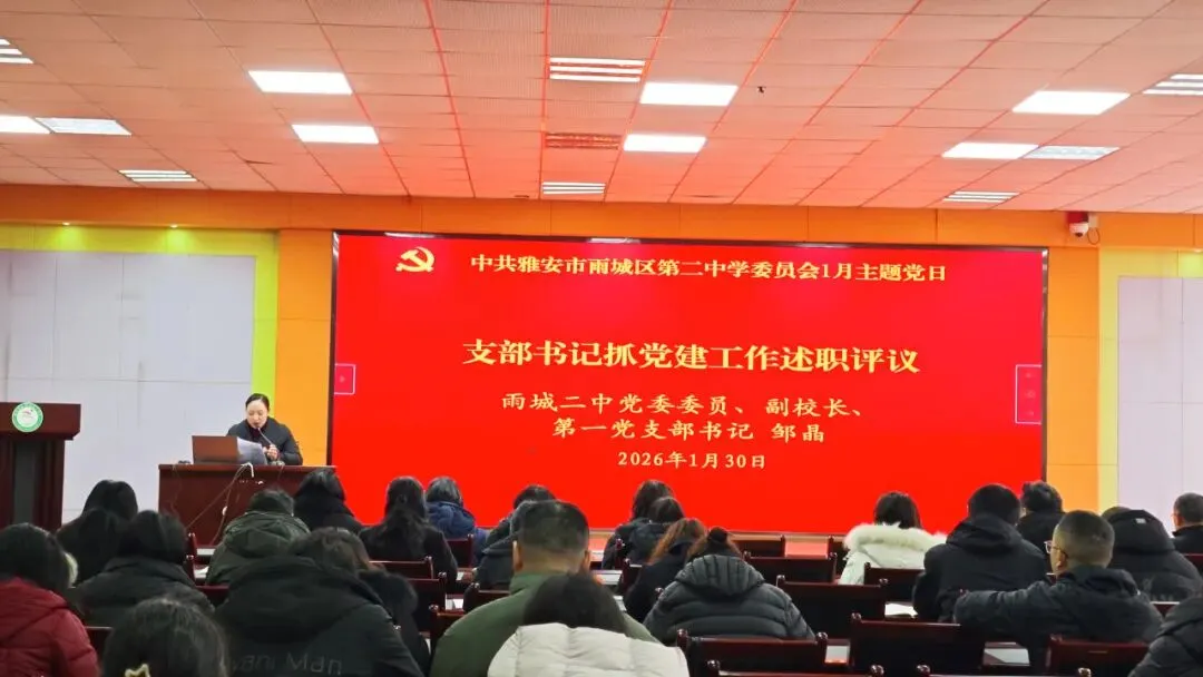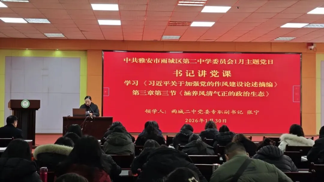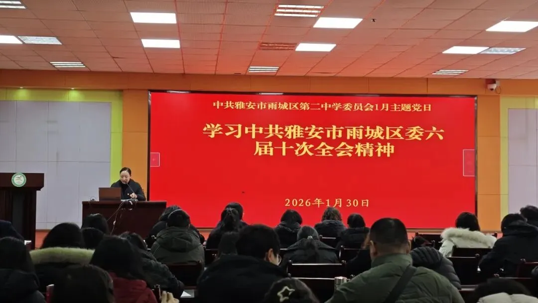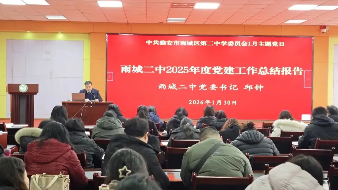 1月30日,雨城二中举行一月主题党日活动,总结2025年党建工作。活动分两个阶段有序开展,全校党员、入党积极分子、入党申请人140余人齐聚一堂,在庄重严肃的氛围中接受思想淬炼与精神洗礼,凝聚起推动学校高质量发展的磅礴力量。