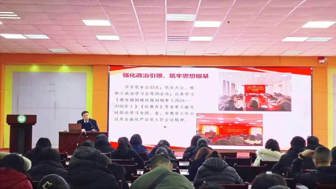 学校党委书记邱钟作2025年度党建工作总结报告。报告从理论学习、组织建设、师德师风、党建与教学融合等方面全面回顾过往一年工作,梳理了以党建引领“五育并举”、打造特色党建品牌等成效,同时剖析不足并明确2026年“深化党建赋能、强化师德建设、优化育人质量”的工作思路。