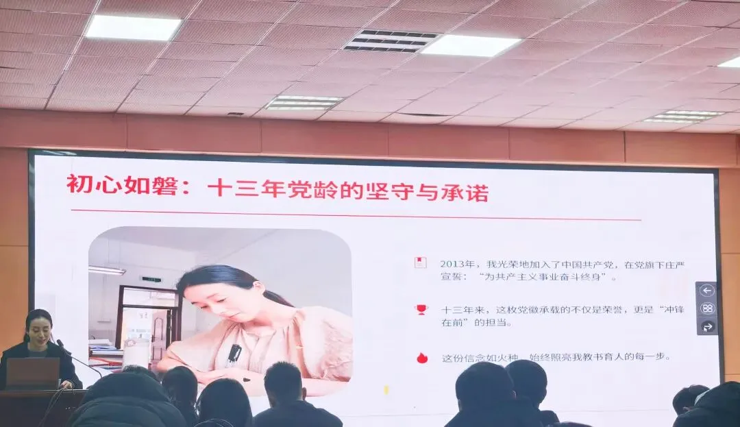 随后,优秀党员代表李峥瑾、张雪分享先进事迹。她们结合自身教学经历,讲述了在课程改革、学困生帮扶、家校协同等工作中的暖心故事,展现了党员教师“爱岗敬业、关爱学生、潜心育人”的精神风貌。真挚的分享引发全场共鸣,进一步激发了党员们的责任意识与奉献热情。