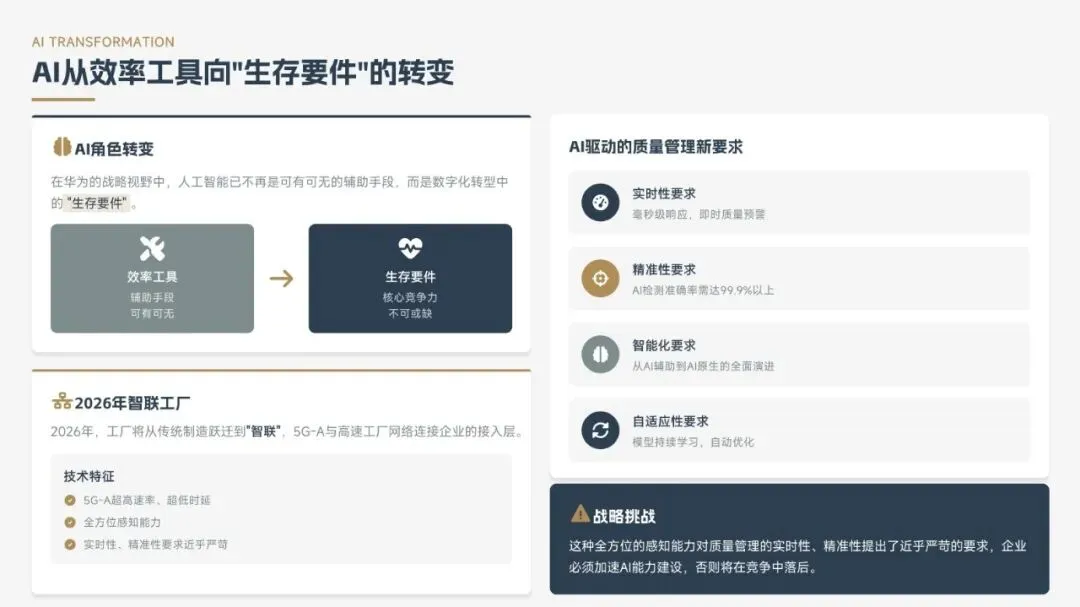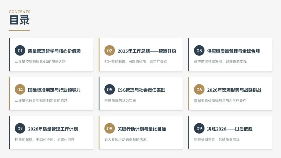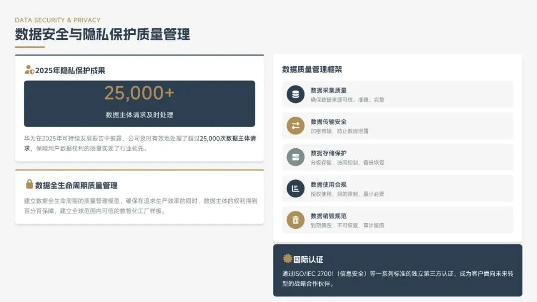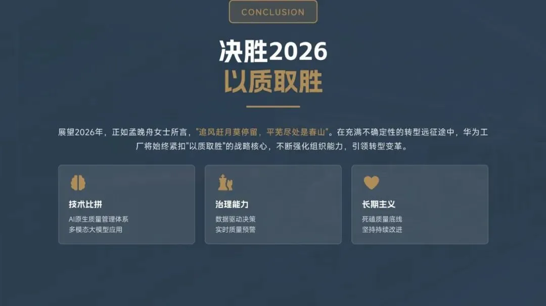 在2026年这个“数据要素价值释放年”的产业之际,回顾2025年华为工厂在质量管理领域的实践,不仅是对过往成绩的总结,更是对华为“质量是生命线”核心价值观的深度践行。