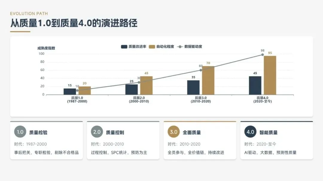 华为的质量管理已经从传统的质量控制(Quality Control)全面转向了基于人工智能、大数据与云良好的质量4.0(Quality 4.0)时代。