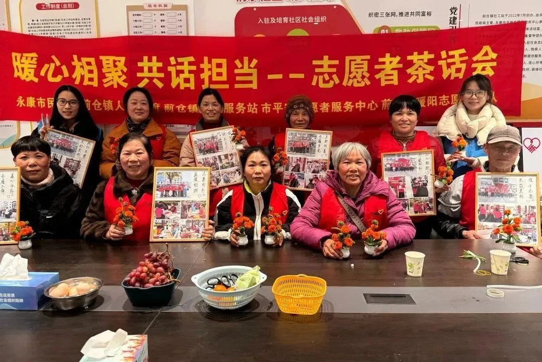 (二)1月5日下午举办 “暖心相聚,共话担当” 志愿者茶话会,9 名骨干志愿者参与,回顾年度服务历程、研讨未来服务方向,设置 “柿柿如意” 盆栽扭扭棒手工环节增进情谊,发放土索面、定制服务瞬间相框等纪念礼品,凝聚志愿力量。