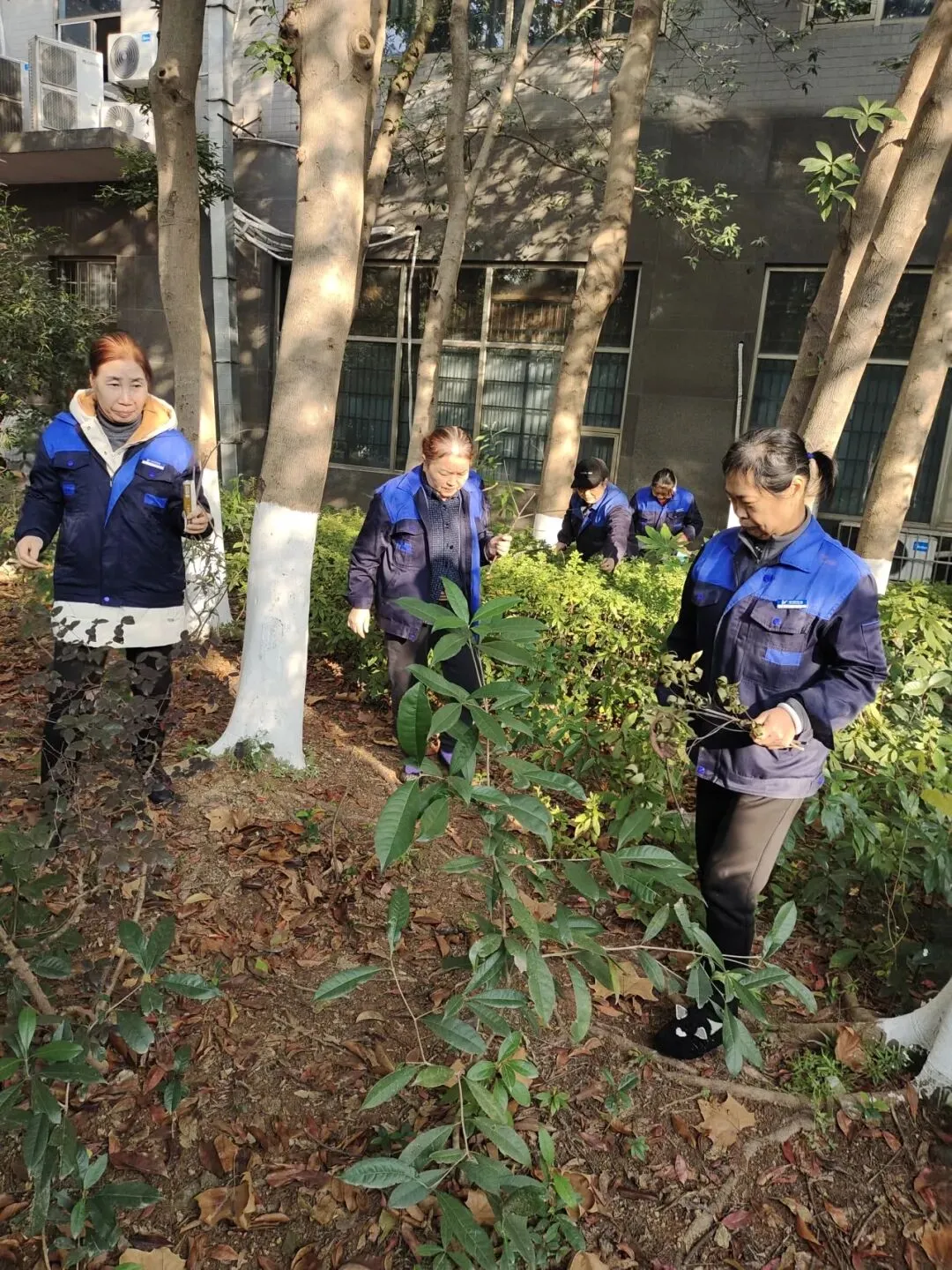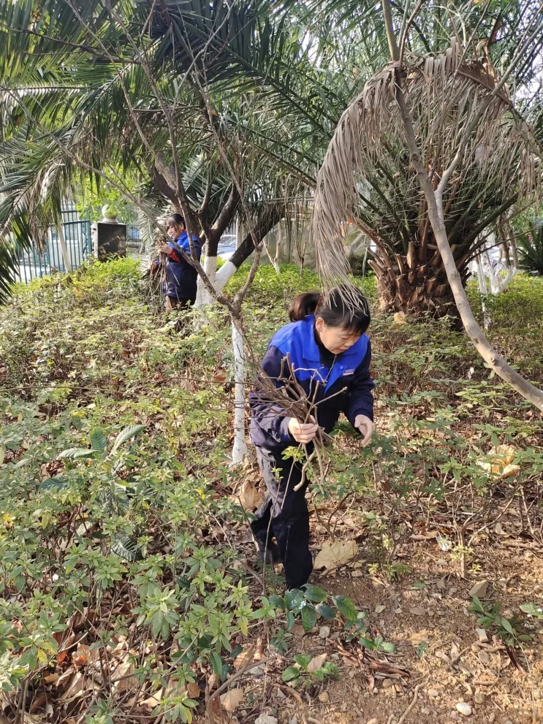 保洁工作中,重点开展了园区绿植落叶清理、公共设施深度擦拭及节前卫生大扫除。组织保洁人员对园区内绿化带、草坪中的落叶、枯枝进行集中清理