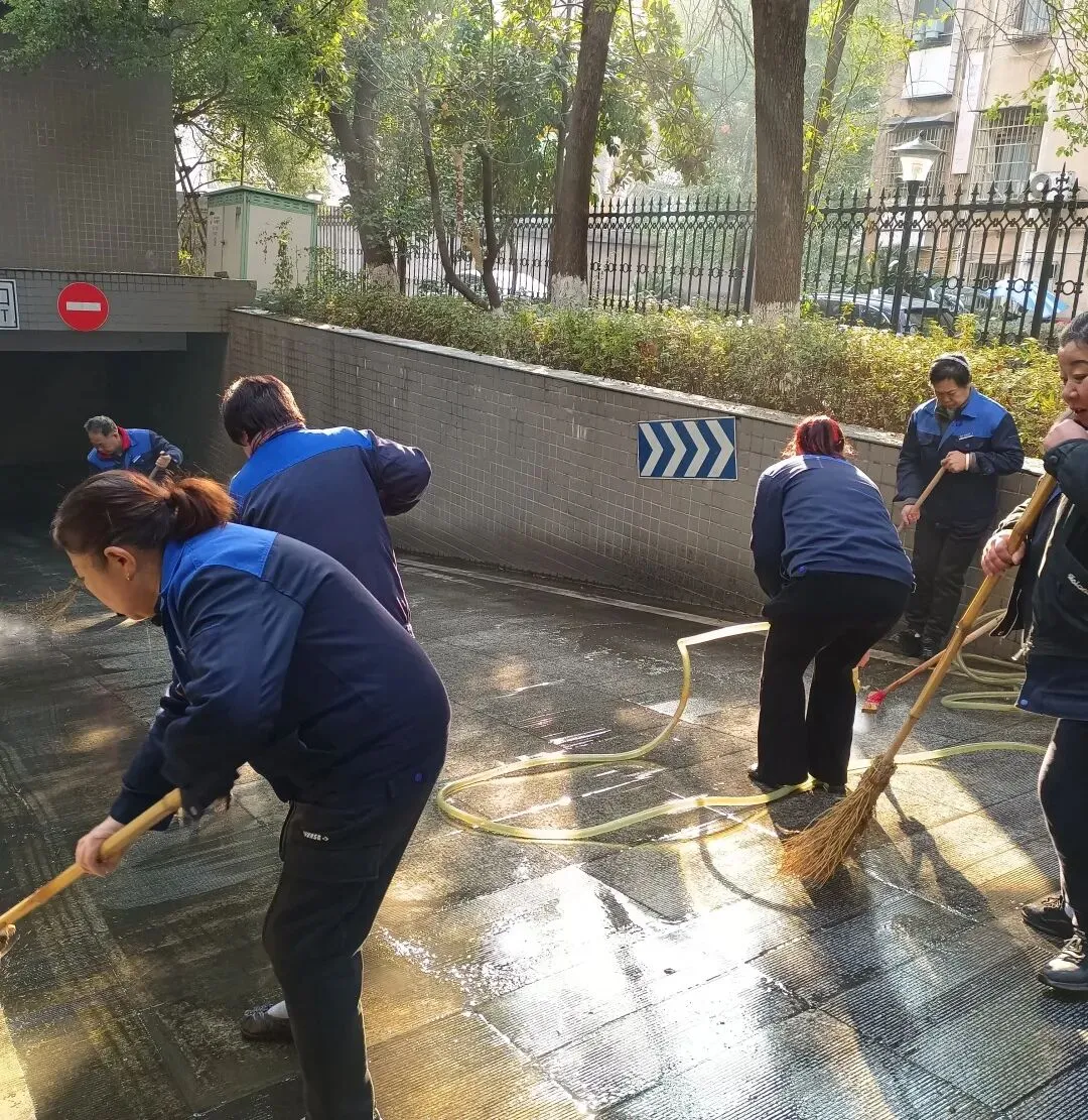 节前开展全园区大扫除,针对墙角、楼梯转角等卫生死角进行彻底清扫,确保业主在整洁的环境中迎接新春。