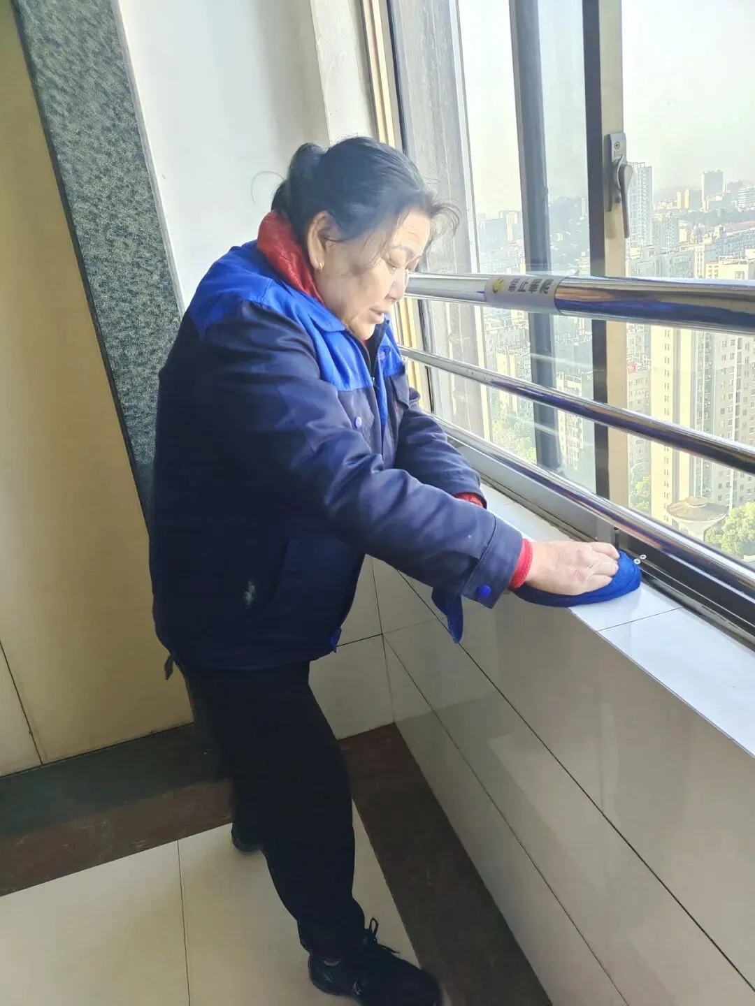 在日常保洁方面,每日对小区主干道、楼道、电梯轿厢、单元大厅等公共区域进行全面清扫,包括地面清洁、垃圾清运、扶手擦拭等;确保地面干爽、无异味、设施完好,保持了公共区域的常态化洁净。