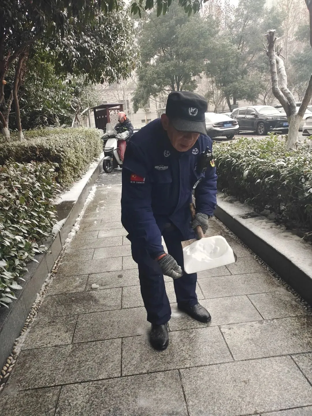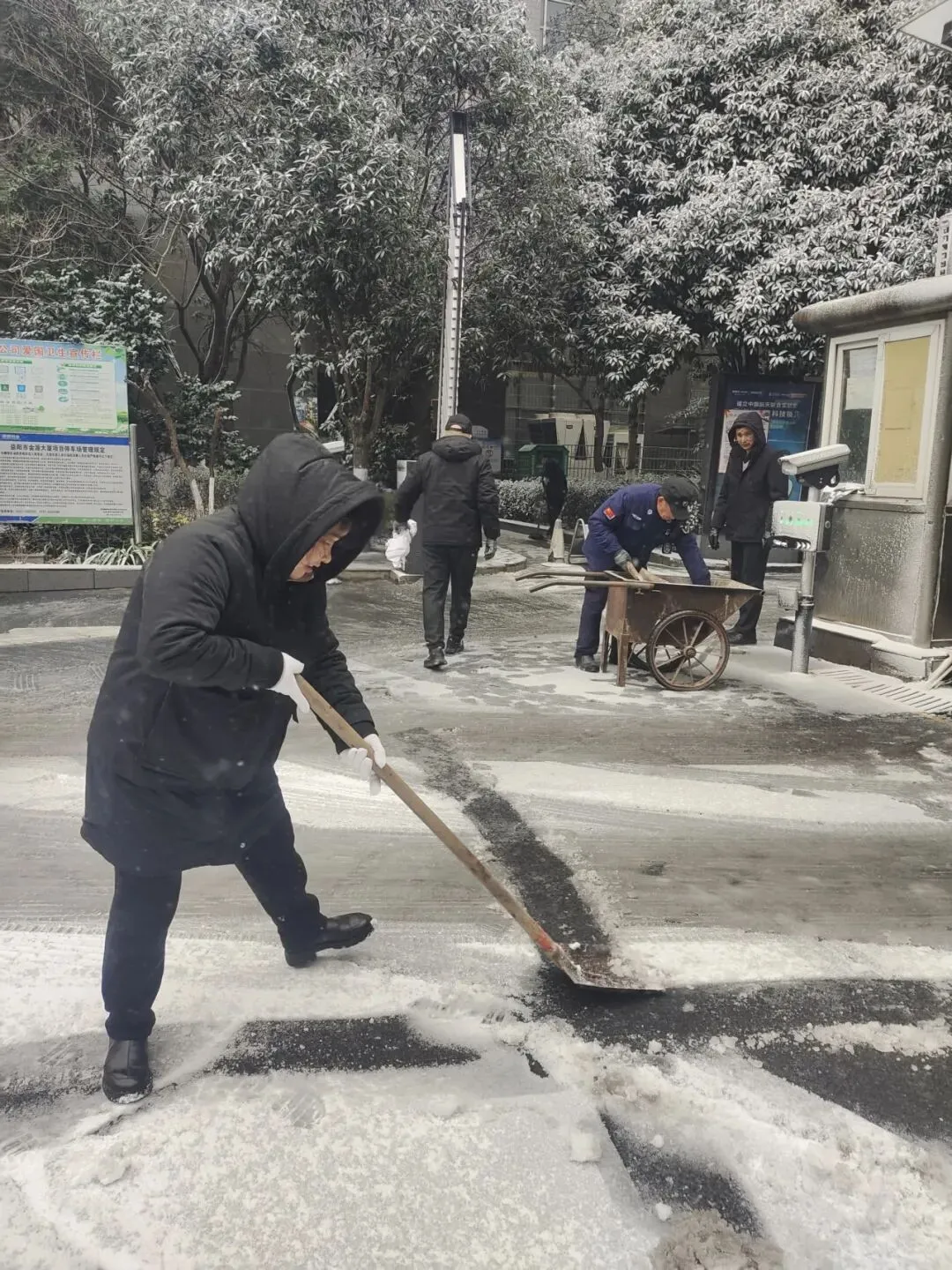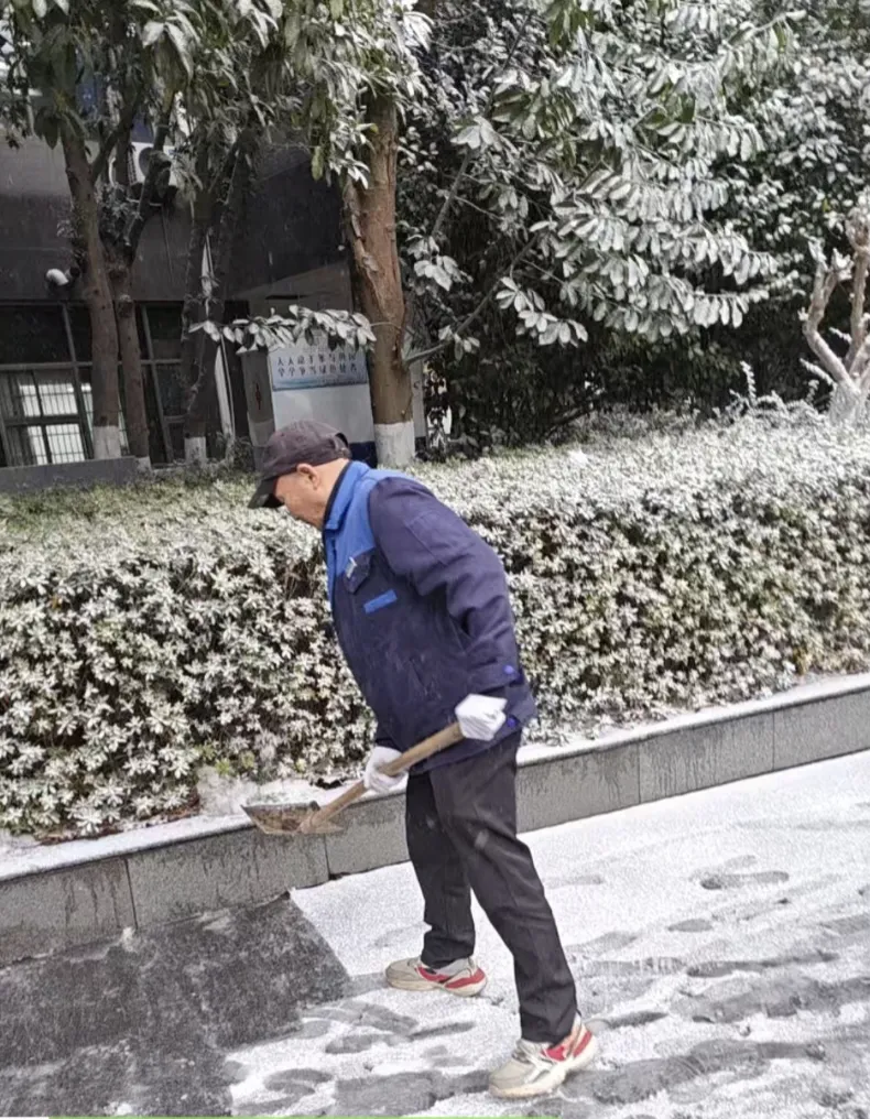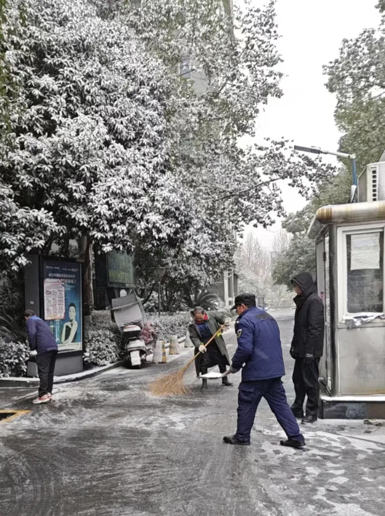 保洁部雪天气后的路面清理工作,保障小区道路通行安全。