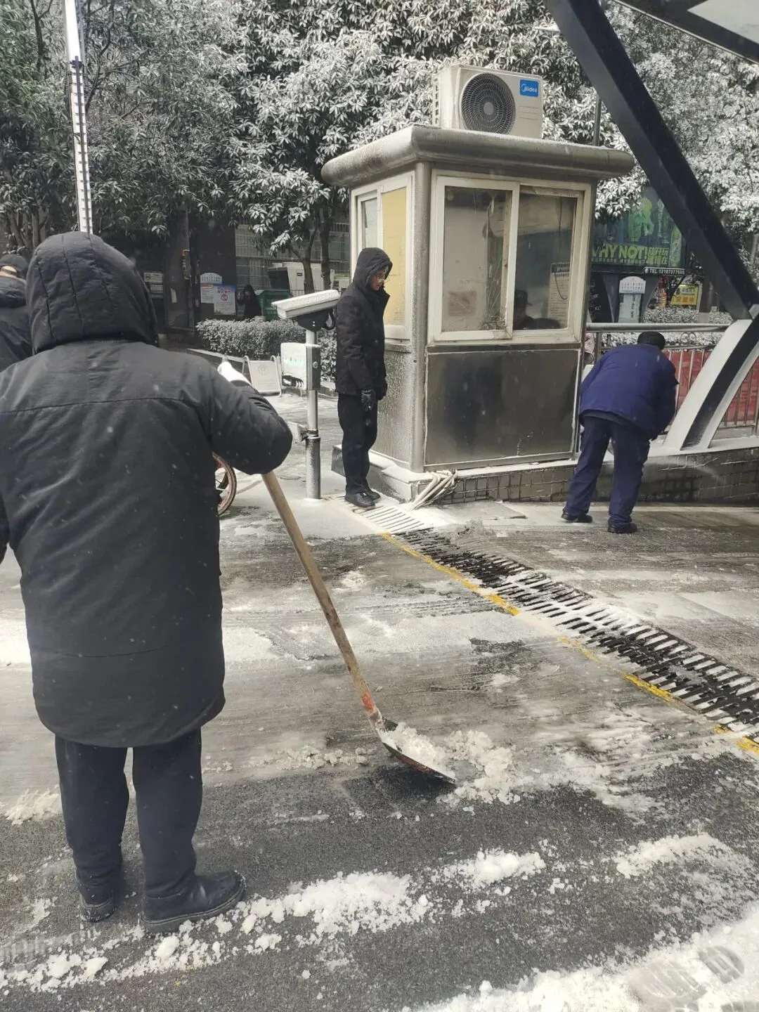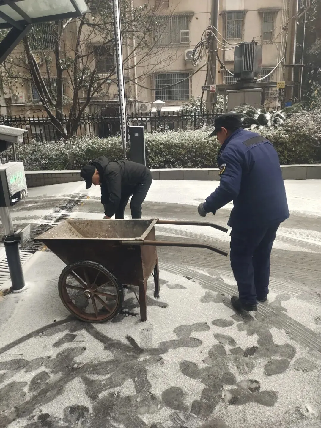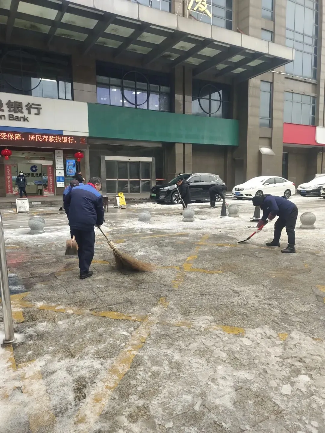 保洁部雪天气后的路面清理工作,保障小区道路通行安全。
