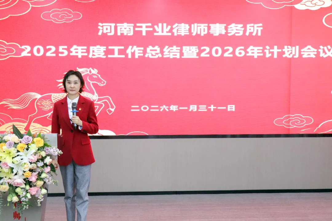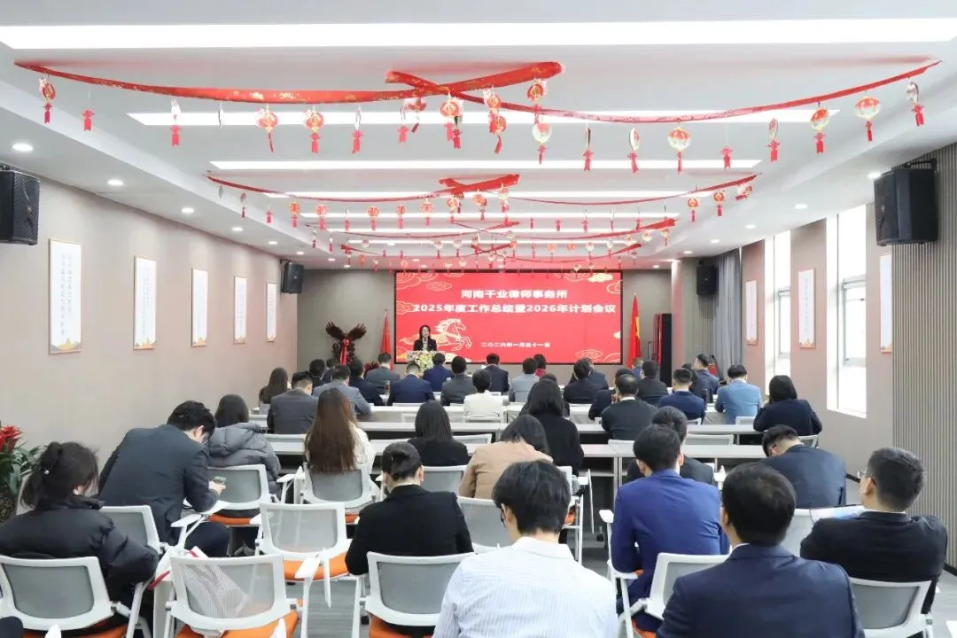 吐信金蛇追雪去,奋蹄骏马踏春来。2026年1月31日9时,千业律所2025年度工作总结暨2026年工作计划会议顺利召开。会议分为两个阶段,第一阶段由执行主任刘伟、党支部书记吴京霖、千业(海口)律所代表张鹏、业务部部长分别就律所、党建、分所、部门方面工作进行2025年回顾和2026年展望。第二阶段由监委会主任张国芳、创始主任关宪法作总结发言。本次会议由张双兰律师进行主持。