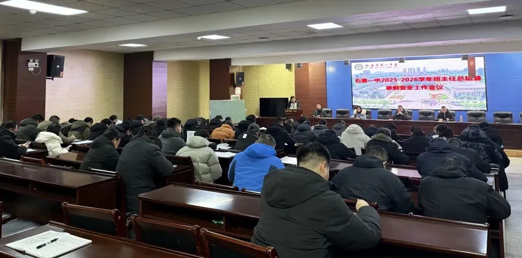 为进一步加强班主任队伍建设,总结本学期工作经验,筑牢校园安全防线,1月30日下午,石首一中在报告厅二楼举行了2025-2026学年上学期班主任工作总结暨寒假安全工作会议。校党委书记张国勇,党委委员、副校长宋方,各年级行政领导及全体班主任参会,共同回顾本学期工作成果,落实寒假安全管理。会议由德育处主任刘昌顺主持。