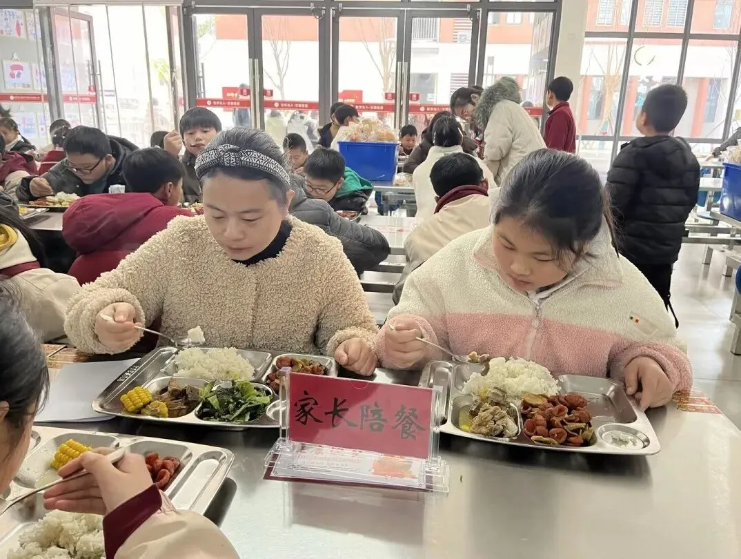 1月27日,星期二上午,学校食堂里暖意融融,家长陪餐活动温情开启。受邀家长们与孩子一同品尝营养午餐,近距离感受校园餐饮的卫生与品质,在热气腾腾的烟火气里,加深了对校园生活的理解与信任。