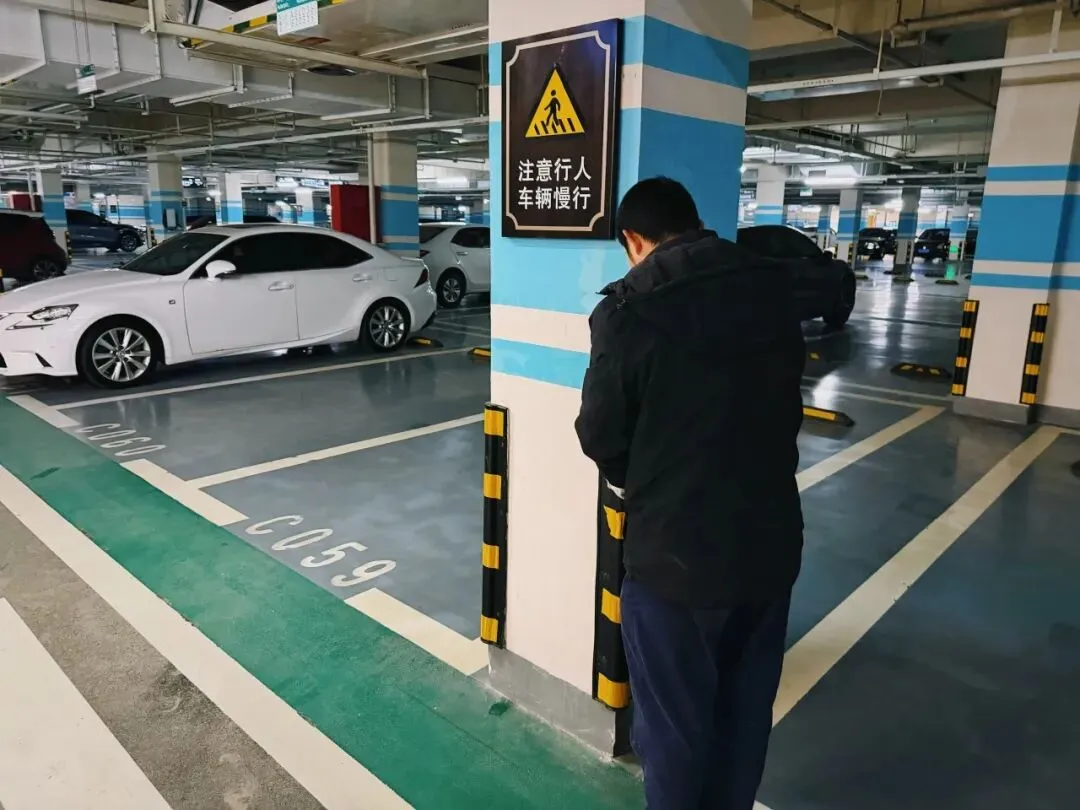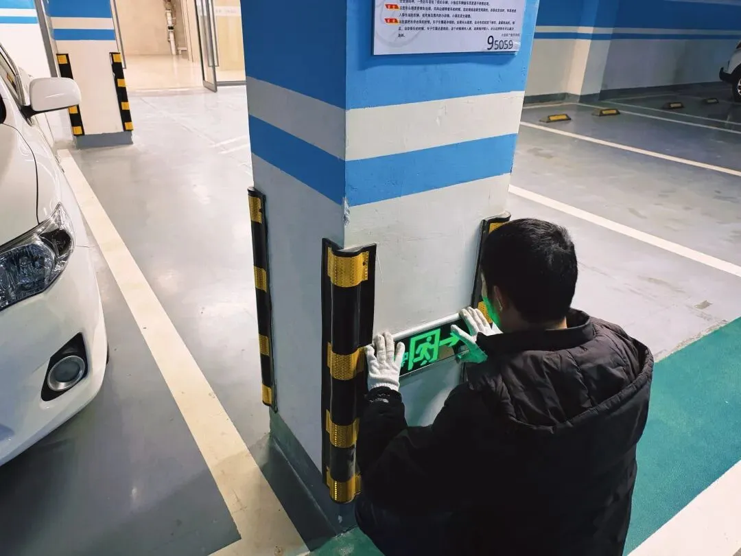 ⤵️细节守护不松懈!工程师傅对地下车库防撞条、安全出口标识全面检修维护,筑牢园区出行安全防线,让每一次通行都安心✨