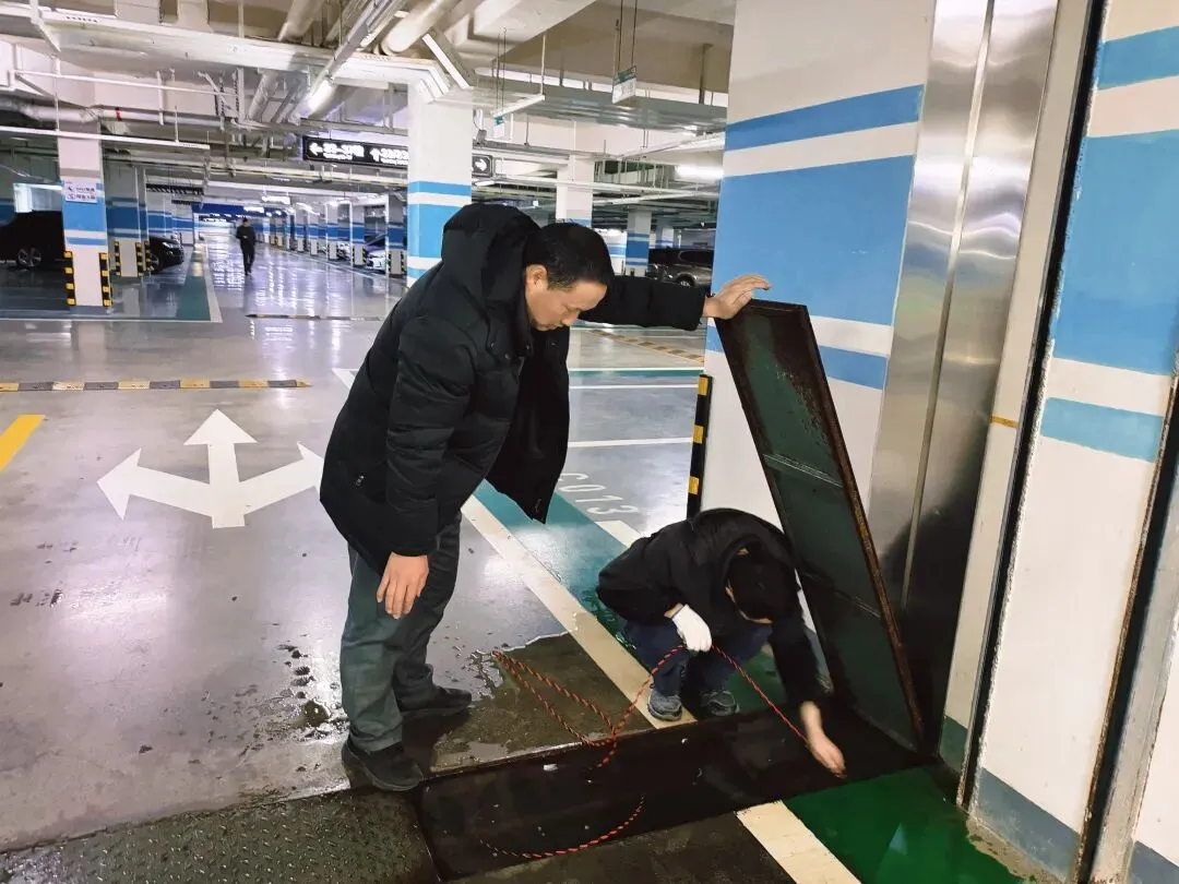 ⤵️雨天突发积水隐患,工程师傅即刻奔赴现场,快速疏通车库下水口,及时解决渗水问题,为业主出行保驾护航✨