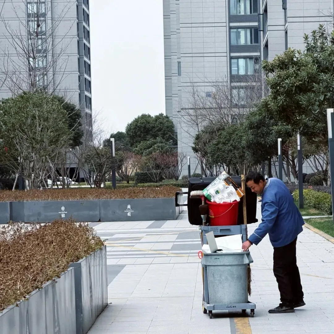 ⤵️保洁大叔穿梭园区清扫打理,用忙碌的身影守护园区洁净,让美好从清晨开始✨