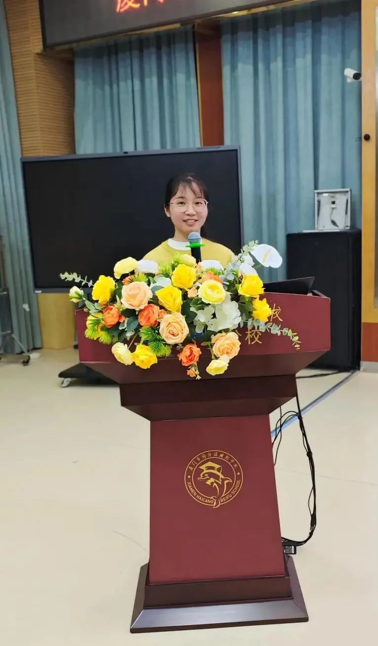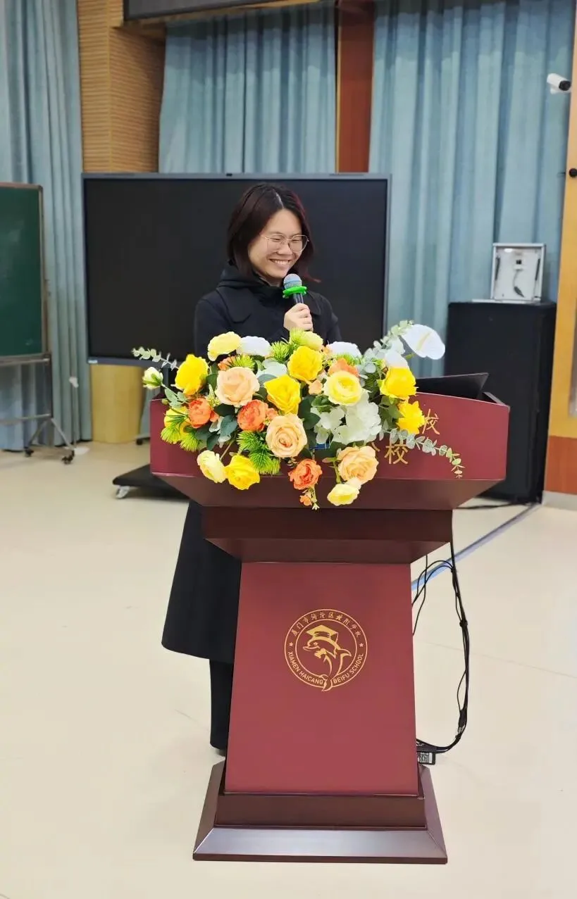 学生成长中心副主任林香君老师分享“三维并进”德育体系的实践成果。本学期,学校构建立体化的德育工作格局:在德育队伍建设上,通过梯队培养、以赛促训,助力专业成长;在家校社协同方面,深化家委会“沉浸式共育”,与社区共建“教联体”,拓展育人空间;在全员导师工作中,构建校内外“双环引领”带导模式,体现育人工作全员、全程、全方位参与,实现“看见每一个学生”的育人目标。