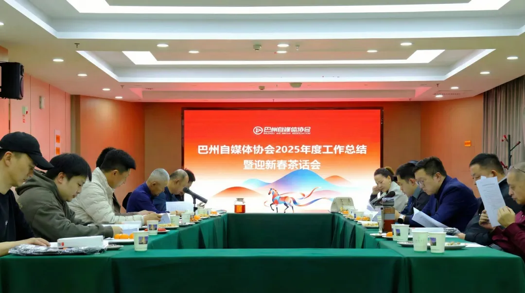 2026年1月31日下午,巴州自媒体协会2025年度工作总结暨迎新春茶话会在库尔勒市举行。协会理事、会员代表齐聚一堂,共同回顾过去一年协会工作开展情况,研究部署2026年重点工作方向,交流行业发展趋势。会议由协会会长田瑞主持。