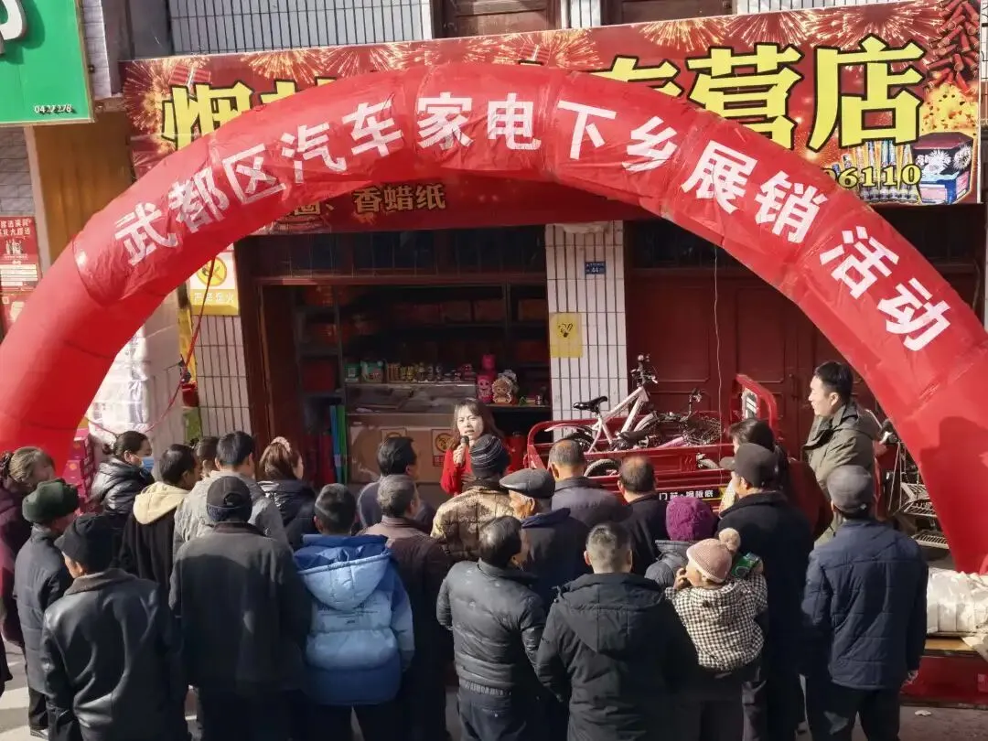 1月27日,区商务局在黄坪镇召开武都区汽车家电进乡镇展销活动座谈会,同步开展汽车家电“以旧换新”展销活动。