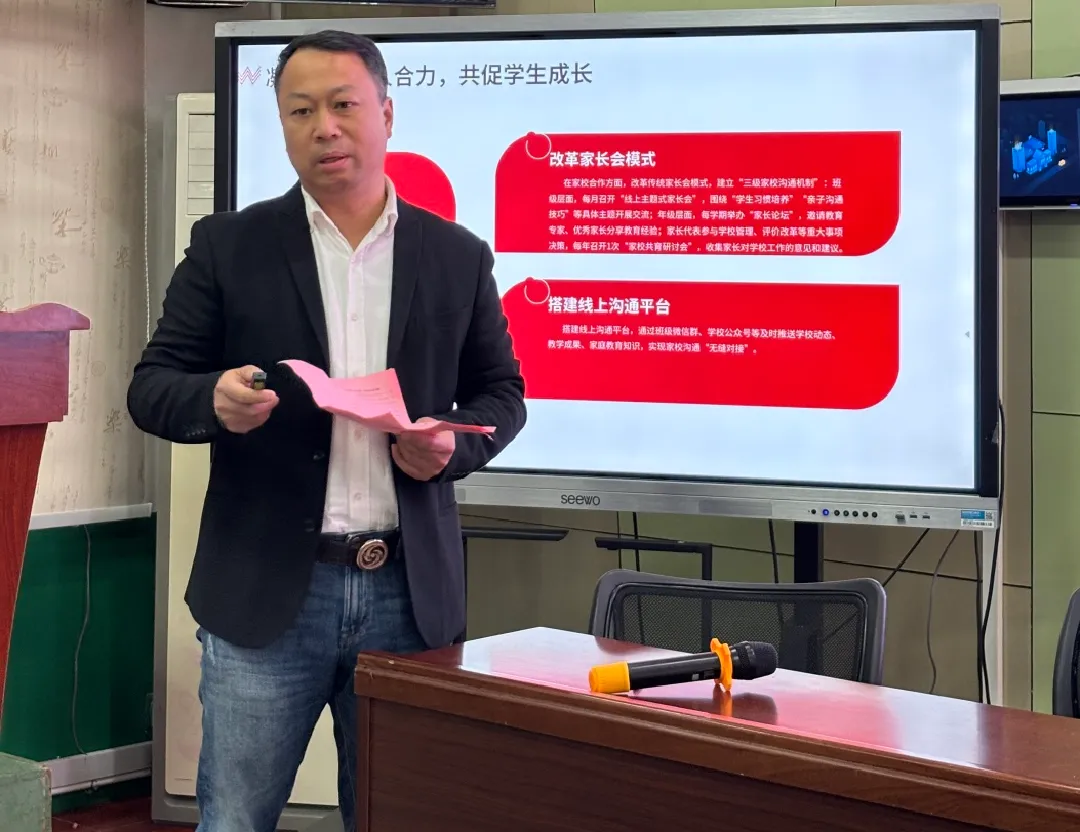 苏敬旋副校长首先以《党建德育双融合 廉洁自律践初心》为题作工作总结。他从党建引领、德育深耕、廉洁自律三个维度,回顾了本学期学校在“三会一课”落实、德育主题活动开展、家校协同育人等方面的扎实成效,也客观剖析了当前党建与德育融合深度不足、德育活动品牌化薄弱等问题,并明确了下学期深化融合机制、优化德育体系的具体计划。