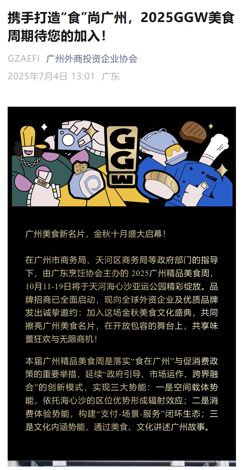 同时,积极响应广州市优化营商环境工作部署,紧密配合市商务局开展系列城市品牌宣传活动。围绕“羊城消费新八景”“2025广州精品美食周”等重点活动,通过专题报道、图文推介、互动引导等多种形式,全方位扩大活动声量,讲好广州营商故事,充分展现城市活力与魅力。