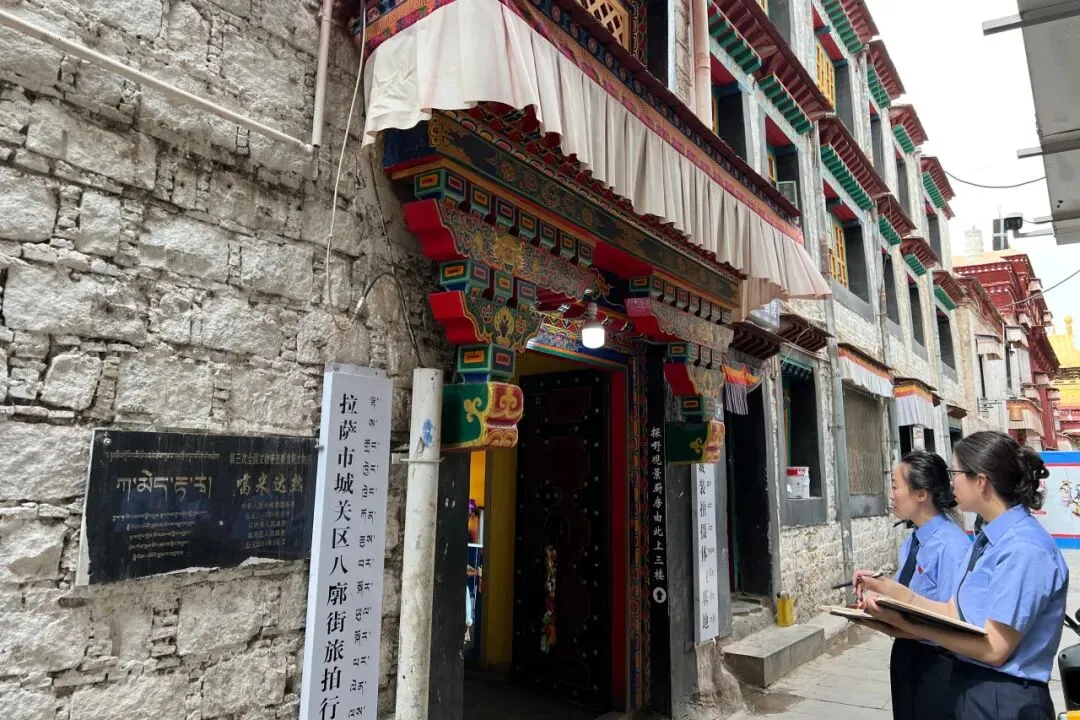 2025年6月,拉萨市检察院检察干警在八廓古城实地办案。