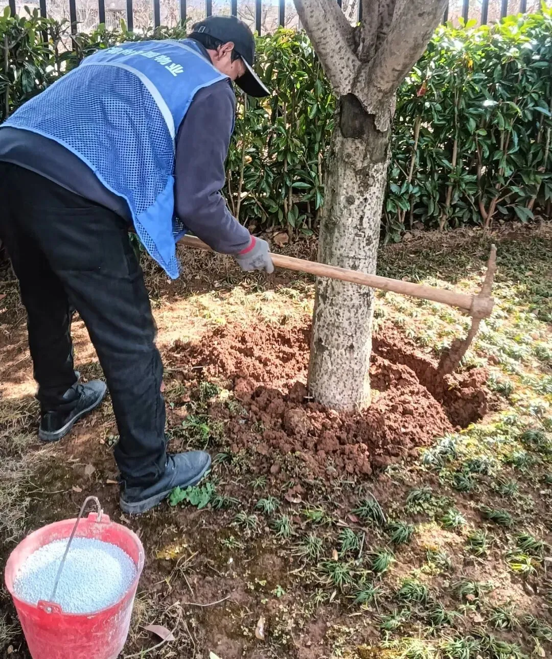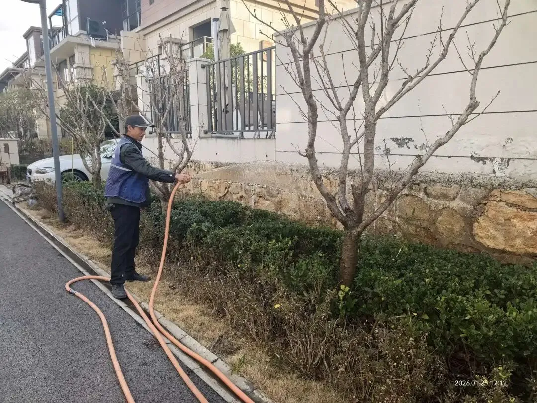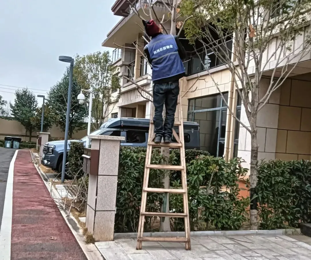 在一月份,植物进入休眠状态,此时,绿化部的工作主要围绕去除枯死枝条、调整树形、清理落叶、施肥管理等开展,保障小区整体环境品质,植物安全越冬以及为来年春季景观复苏奠定基础。