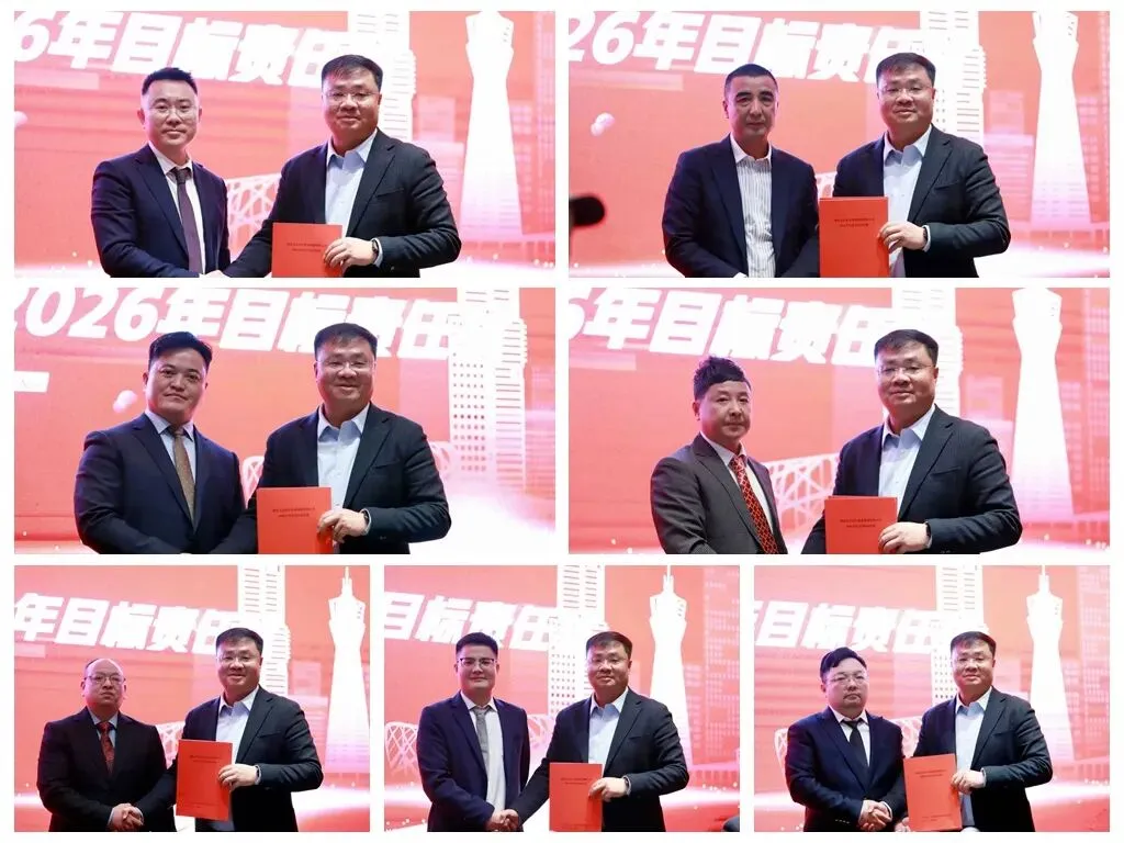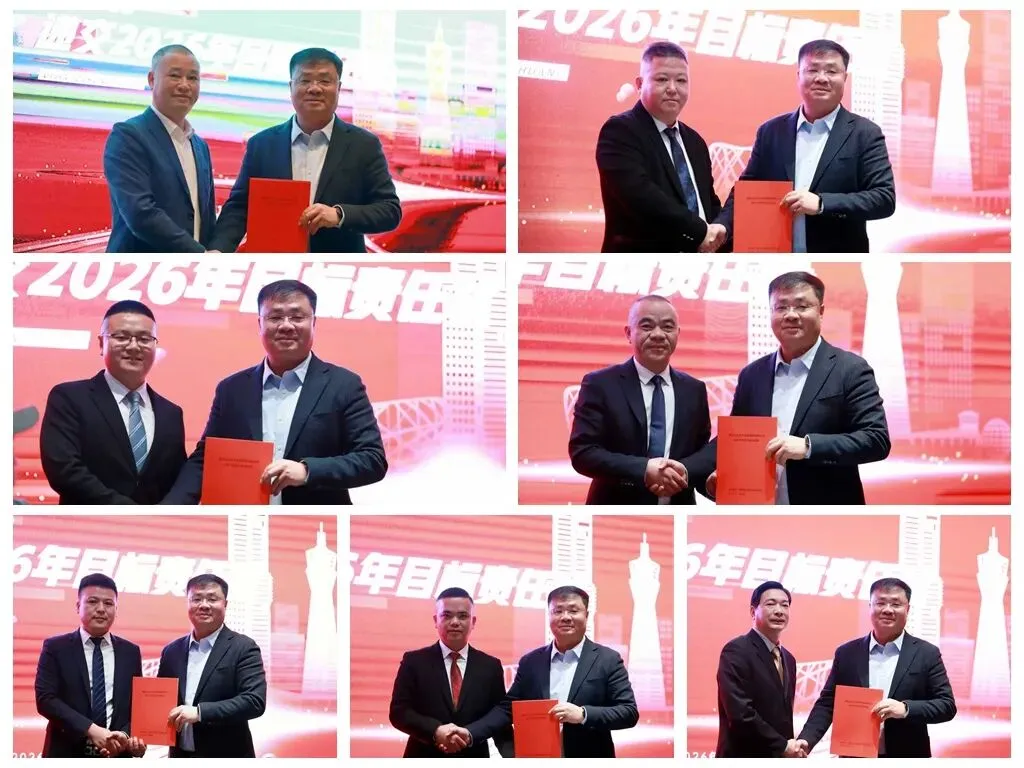 集团下属14家经营企业的总经理向董事长递交了《2026年度目标责任状》并做激情澎湃的表态发言,展现了其坚决完成2026年度目标的决心与信心。