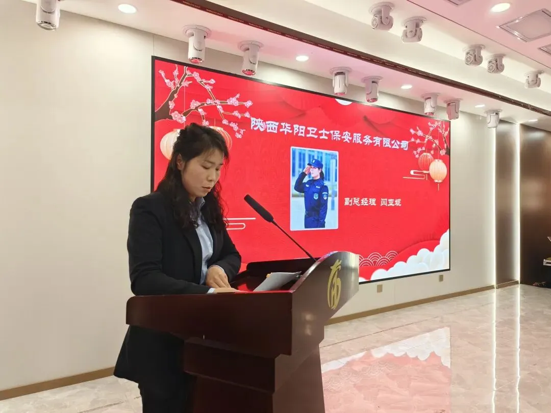 2026年1月31日下午,陕西华阳卫士保安服务有限公司召开2025年度工作总结暨优秀队员表彰大会成功召开,会议就全年工作做全面总结并就2026年工作做计划部署。 公司副总经理闫亚妮,就公司全年财税管理,项目拓展,服务理念,队伍发展四个方面做详细报告;同时对2026年工作做了新的规划安排:聚焦核心短板,以数字化赋能、精细化管理、精准化突破为核心,继续加强项目拓展;推动四大工作板块与业务线适配,助力公司发展迈上新台阶。