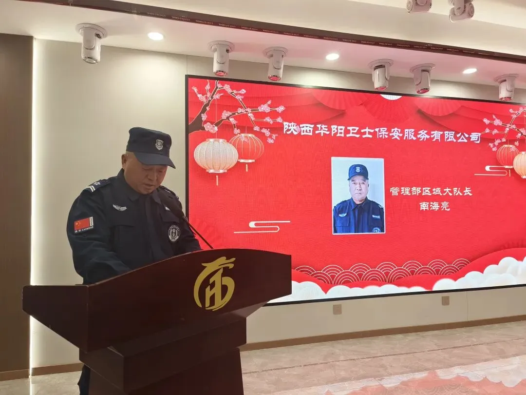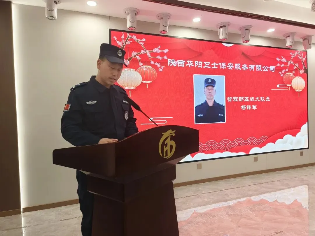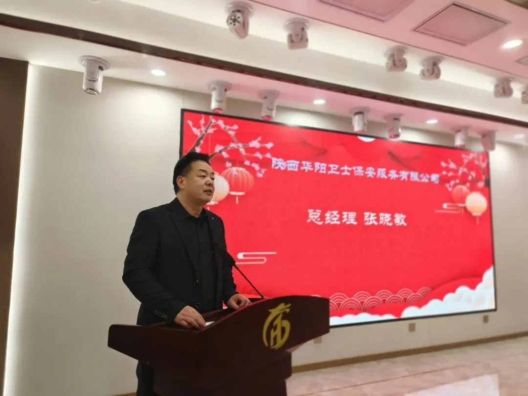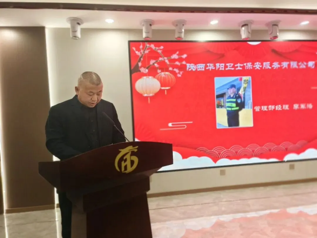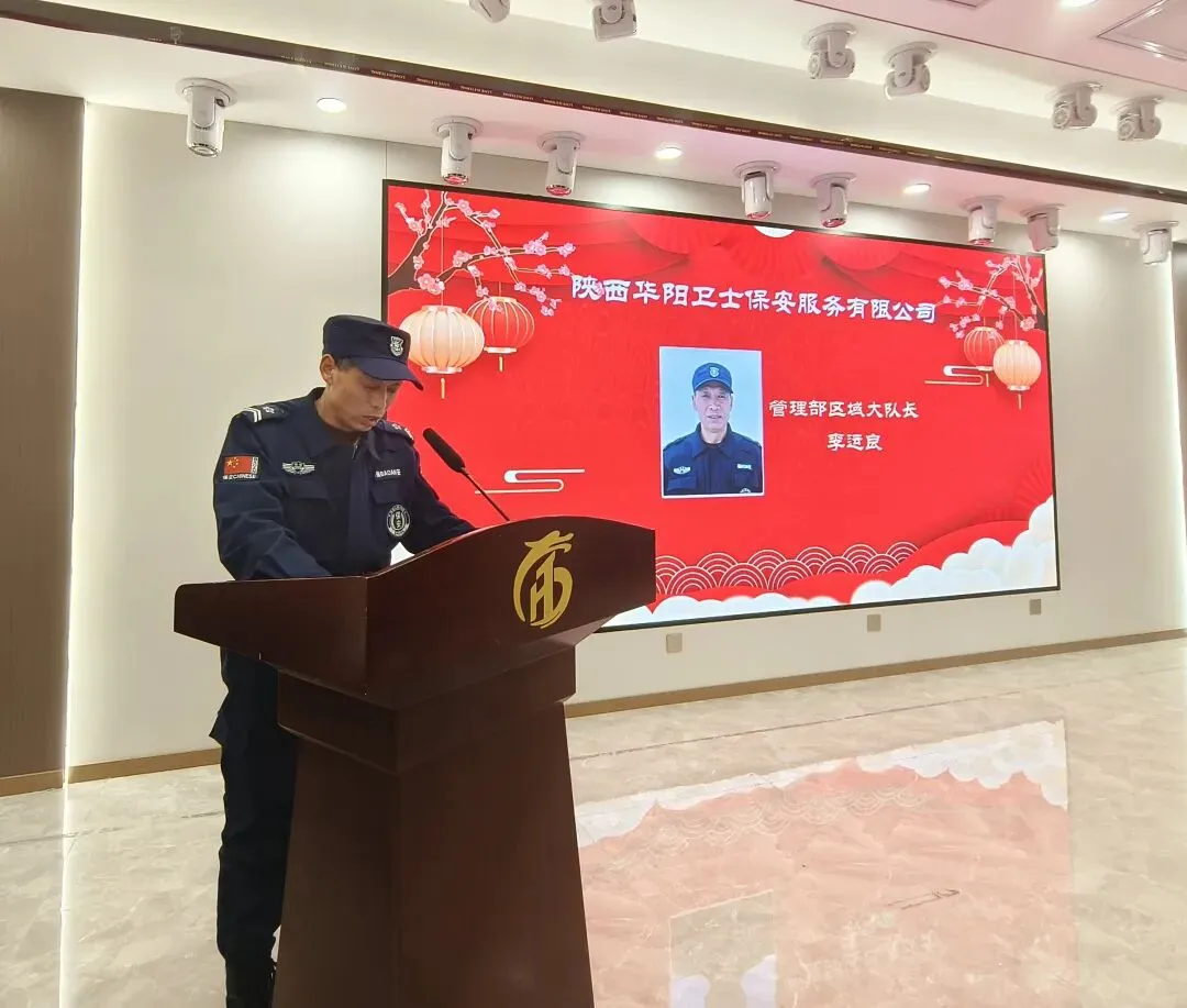 公司管理部经理李军洛,做全年队伍管理工作汇报,就2025年各班组对客户单位服务情况,全年队员培训学习情况,全县举办大型户外活动执勤情况等队伍综合执勤情况做总结汇报;2026年首先将继续深化岗前培训,提升队员服务意识与素养加强队伍整体服务意识;其次,开展针对性应急演练强化应急能力建设;继续加强回访频次,收集反馈解决客户需求提升客户满意度;巩固加强管理制度落实完善精细化管理;坚持关心关怀队员思想动态,为队员解决根本需求与困难,有效增强队伍凝聚力。新的一年管理部将以全面提升服务品质为核心目标,凝聚团队活力。以求真务实真抓实干的工作作风,全力塑造华阳安保的专业品牌形象。公司管理部区域大队长杨锋军,做全年工作总结,总结涵盖思想教育、队伍管理、工作成果、未来计划四个方面;思想教育,向新队员讲解工作性质与重要性,强调保安队伍代表政府和公司形象的思想认识,工作中要严守规章制度,做好本职工作。队伍管理,要求每位队员都要以身作则,公平公正处理问题。每位队员的精神形象,要由交班班长做接班前检查,必须做到规范达标再上岗。工作成绩,年初办公楼周围车辆停放管理混乱,经努力指引纠正摩托车、电动车不再驶进楼前,汽车按照规定停放有序。队员巡逻及时发现办公楼漏水情况,未造成严重后果。未来计划,做好上传下达,及时传达公司会议精神,组织队伍及时进行学习提高;完善和制定工作措施与制度,弥补以往工作不足。公司管理部区域大队长南海亮,对所负责区域安全保障工作做总结汇报,并就2006年工作做三点规划:1.继续加强队伍建设,有效提升队伍执勤能力;2.不断深化服务保障,确保提高项目满意度。3.落实细化日常管理,夯实牢固工作基础。公司管理部区域大队长李运良,就所负责区域工作做总结汇报,区域全年完成巡逻执勤任务18360次,处理秩序矛盾72次,排查并整改隐患23次,组织培训36次,成功应急处置2次火情事故,全年小区无重大安全事故。未来工作计划:强化职责管理,按章履职,明确队员职责,强化纪律要素。加强技能培训:开展安全防范等内容培训与实操演练,提升队伍应急处置能力。凝聚团队精神,增强队员凝聚力与执行力。加强巡逻防控:合理规划路线,加强重点区域时段巡查频次,劝阻违规行为。定期排查隐患:对消防设公共设施等定期排查,建立登记记录,明确责任整改。他们在平凡岗位用点滴付出尽显担当,他们用默默坚守诠释保安人的责任,用赤诚之心守护一方祥和!各个工作岗位的优秀代表们以身作则树立行业新风,他们不仅是履职尽责的优秀队员,更是团队中的榜样力量。优秀队员代表程超,就日常工作中积极加强自身学习,严格自身要求,虚心向老队员学习优良作风,认真落实规章制度,以平常心干好日常事做介绍发言。公司总经理张晓敏现场做重要讲话,他就2025年全年各区域所取得的优异成绩给予肯定并代表公司向大家表示感谢。面对行业竞争与发展,他向所有队员提出三点要求:一、要深化“专业”主路线,要以专业的安全保障标准和专业的品质服务标准赢得市场和社会认可。二、要筑牢“安全”主防线,要将安全责任真正落实到每一个岗位,每一个环节,要确保我们的守护地平安无虞。三、要凝集“团队”前行之力,要将继续优化管理流程,完善管理制度,提升监管效能,加强队伍建设为重点,设立和健全团队建设机制;要组织和开展多元素队员互动,加强队员间亲情力和凝聚力;要努力营造积极奋进正能量的团队氛围,提升队员企业归属感和幸福感。 总结在于沉淀和提高,总结在于找到差距不断进步;华阳人的平安卫士,定当以忠诚守护美丽华阳。行业路上我们以诚信待客以专业立本,以不断复盘谋求发展目标,大会在热烈的气氛中成功召开。策马扬鞭启新程,马步踏春向未来;