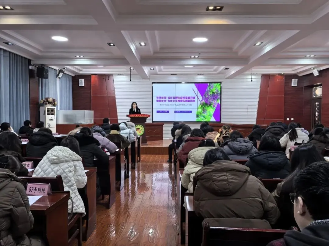 教学副校长王卓丹围绕本学期教学工作进行了全面、细致的梳理与总结。从课程建设、课堂改革、教研活动到学业质量监测,徐徐展开了一幅扎实奋进的教学画卷。随后,王卓丹副校长公布了本学期在各级各类教学竞赛、评优评先中取得的丰硕成果,对老师们的辛勤付出与卓越表现给予高度肯定,并指明下一阶段教学工作的努力方向。
