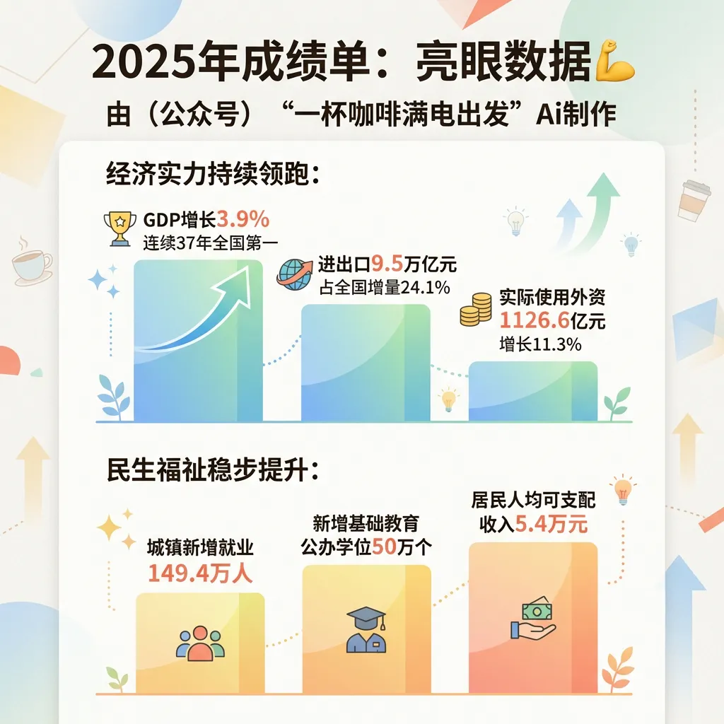 2025年是中国式现代化进程中具有重要意义的一年,也是广东改革发展历程中很不平凡的一年。11月6日至10日,习近平总书记亲临广东视察并出席第十五届全国运动会开幕式,作出一系列重要讲话重要指示,全省广大干部群众备受鼓舞、倍感振奋。一年来,我们坚持以习近平新时代中国特色社会主义思想为指导,坚决贯彻习近平总书记、党中央决策部署,认真落实国务院工作安排,在省委正确领导下,在省人大及其常委会、省政协监督支持下,全面落实省委“1310”具体部署,真抓实干、埋头苦干,奋力推动广东高质量发展不断取得丰硕成果。主要做了以下工作: