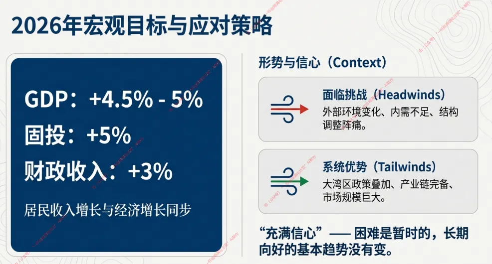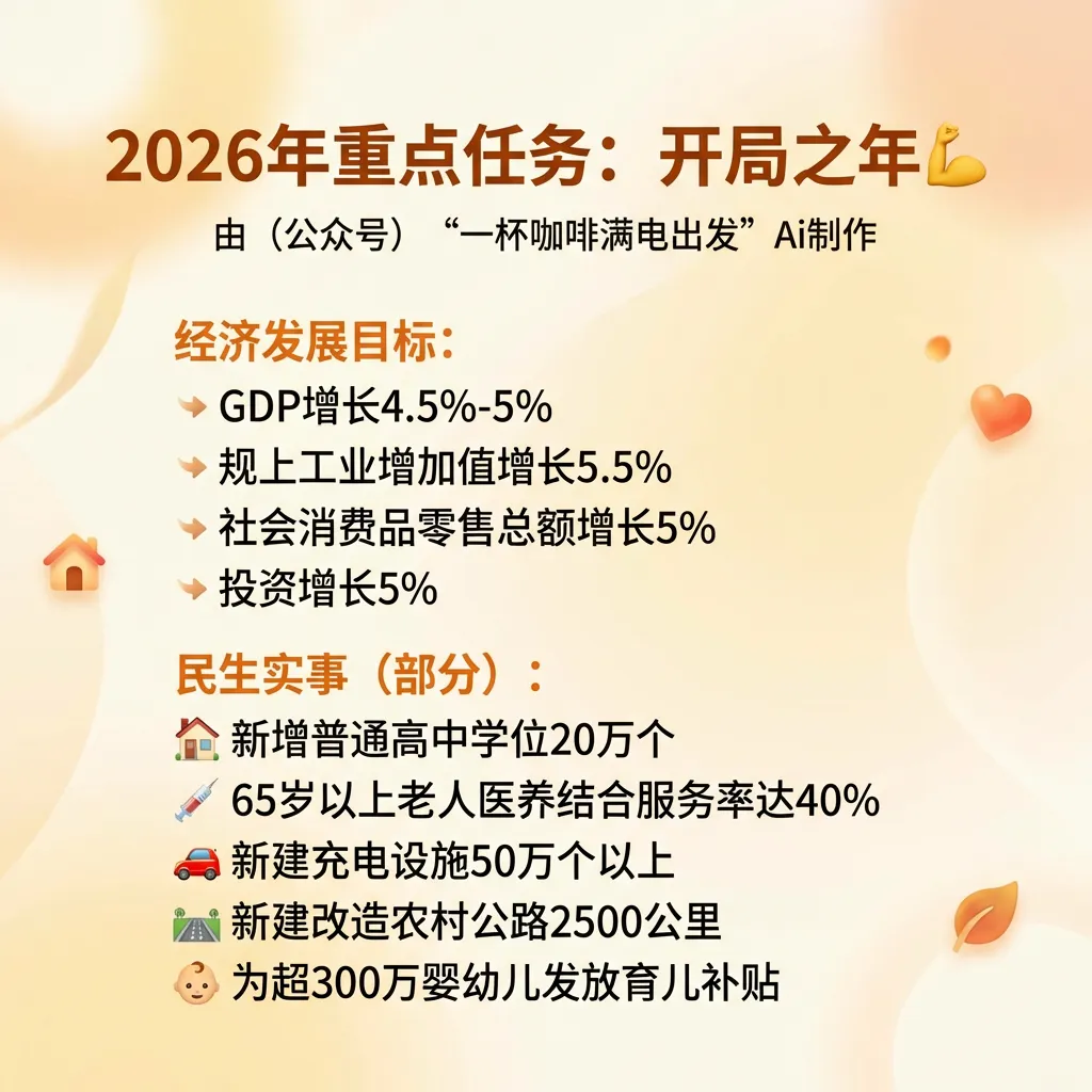 2026年是“十五五”第一年,开好局起好步十分重要。今年经济社会发展的主要预期目标是:地区生产总值增长4.5%—5%,在实际工作中全力争取更好结果;地方一般公共预算收入增长3%左右;居民收入增长与经济增长同步。这样的目标,是立足发展所需、责任所在,综合考虑各方面因素,深入研究提出来的。我们深知,实现这些目标并非易事,需要各方面齐心协力、加倍努力。重点抓好以下14个方面的工作: