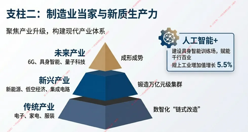 (三)打造具有全球影响力的产业科技创新中心,加快培育和发展新质生产力。一体推进教育科技人才发展,为现代化产业体系建设提供强大支撑,在服务高水平科技自立自强上有更大作为。