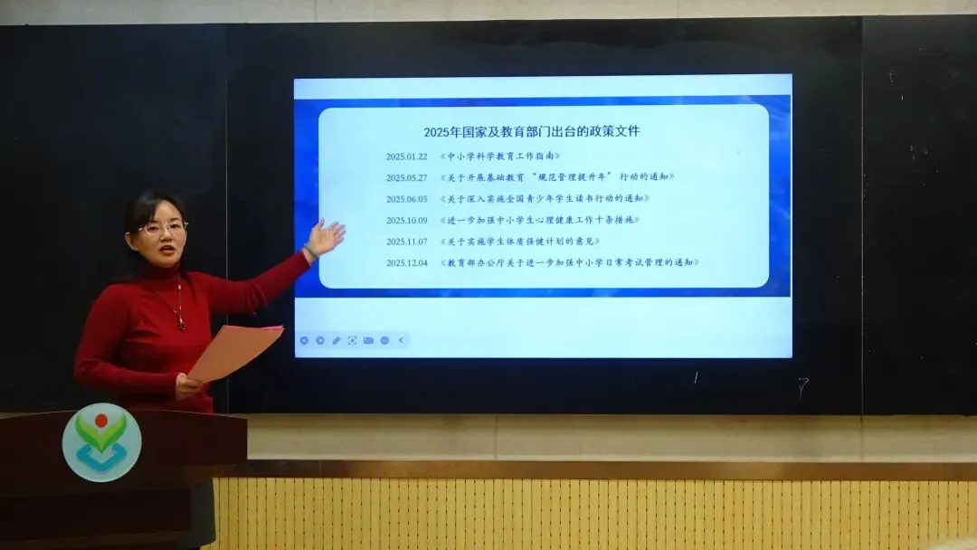 赵书艇副书记做了师德师风培训,强调需锚定政策航向,筑牢思想根基,强化思想政治引领与意识形态阵地建设,深践党的教育方针,严守廉政底线,涵养清风师风,培育德智体美劳全面发展的社会主义接班人。培训中,他带领老师们重温《新时代中小学教师职业行为十项准则》,全体教师认真聆听、细致记录,深刻领会准则要求。此外,副书记还组织全体教师学习假期安全工作相关文件,明确要求大家进一步树牢安全意识、压实安全责任,扎实履行假期安全教育工作职责,为全校师生度过平安祥和的假期筑牢安全防线。
