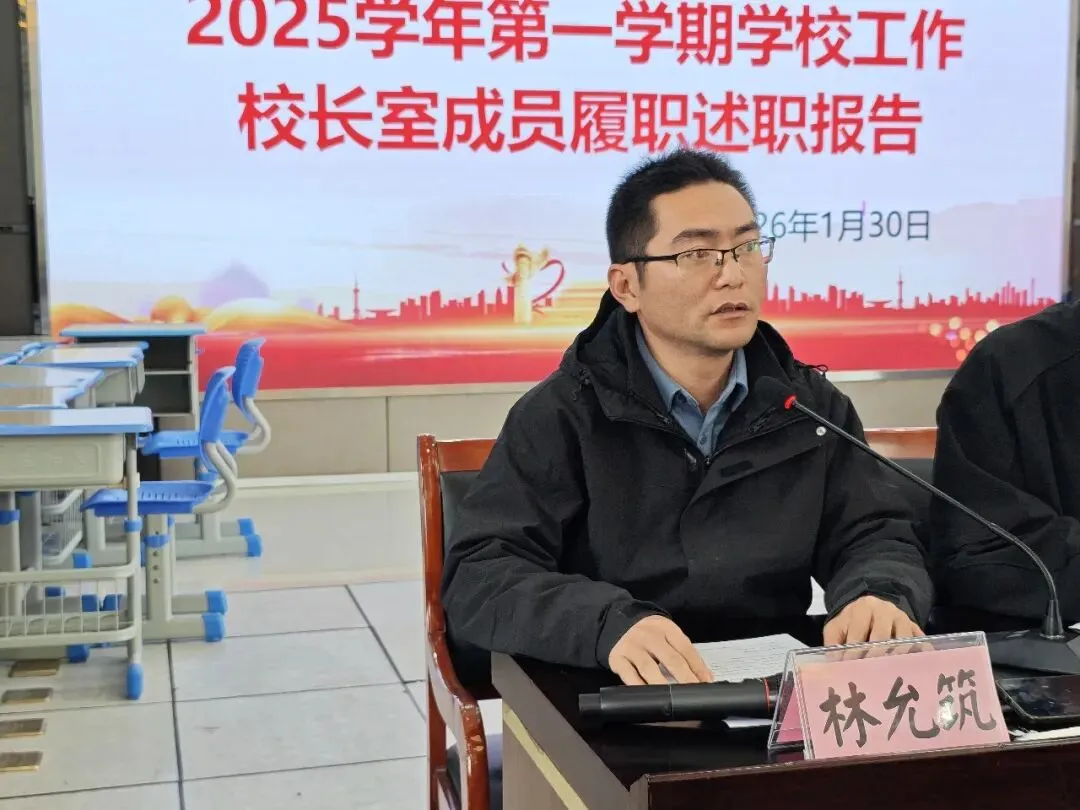 林允筑副校长聚焦德育、文明城市创建与家校协同工作进行部署。他指出,本学期德育成果丰硕:学校累计在省、市、县各级比赛中斩获44项奖项,百余人次获奖,并获8项市级荣誉,充分彰显了“一体两翼、六轮驱动”德育品牌与“三声课堂”改革的成效。