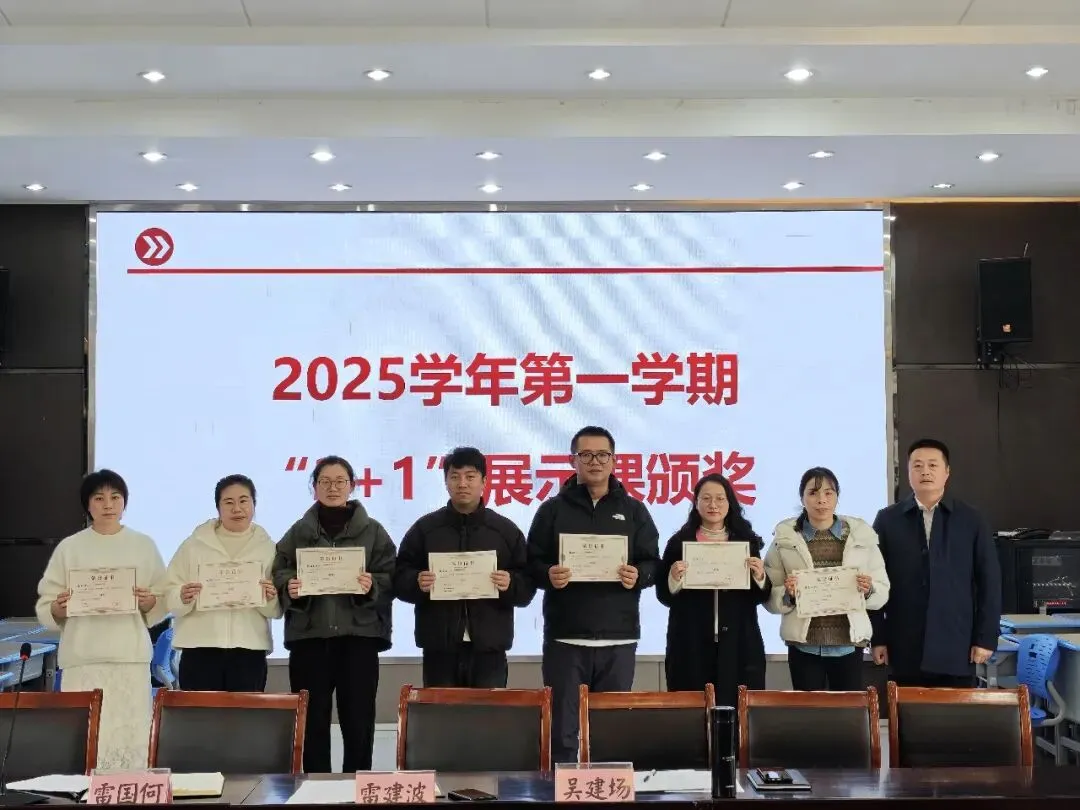 为表彰先进、树立榜样,学校特地举行“2+1”展示课颁奖仪式,为在“2+1”展示活动中获奖的教师进行表彰,激励全校教师深耕教研,砥砺前行。
