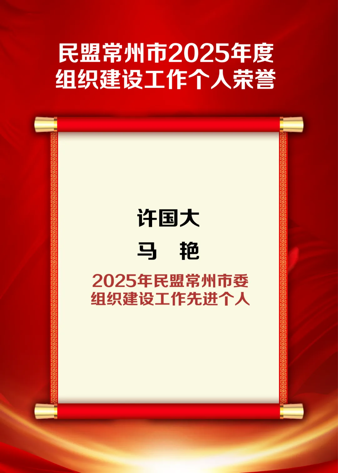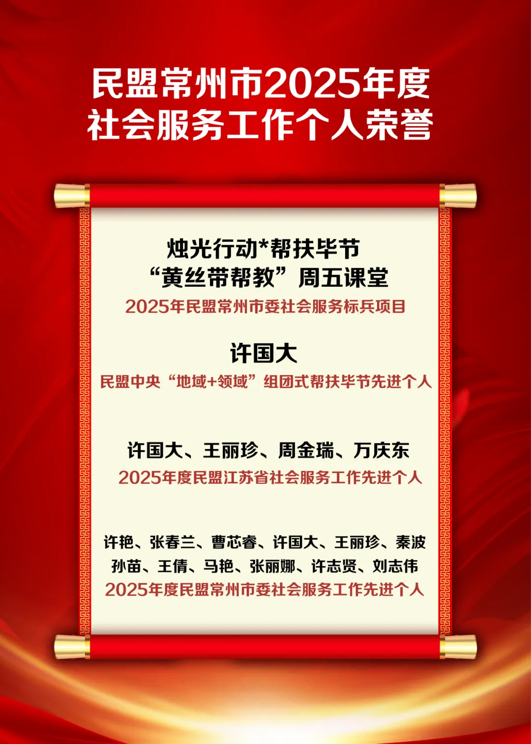 会议最后,曹永忠处长、刘静静主任为2025年度获奖集体和个人颁发荣誉证书,许国大主委为老盟员送上慰问品。
