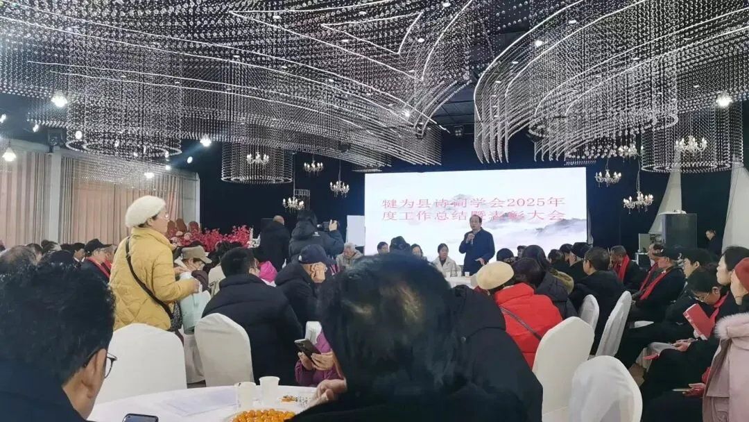整场盛会充满了欢快、热情与正能量,古诗词元素贯穿始终,赢得了现场观众的阵阵掌声与喝彩。此次大会不仅是对犍为县诗词学会过去一年工作的总结与表彰,更是对未来发展的美好期许与展望。