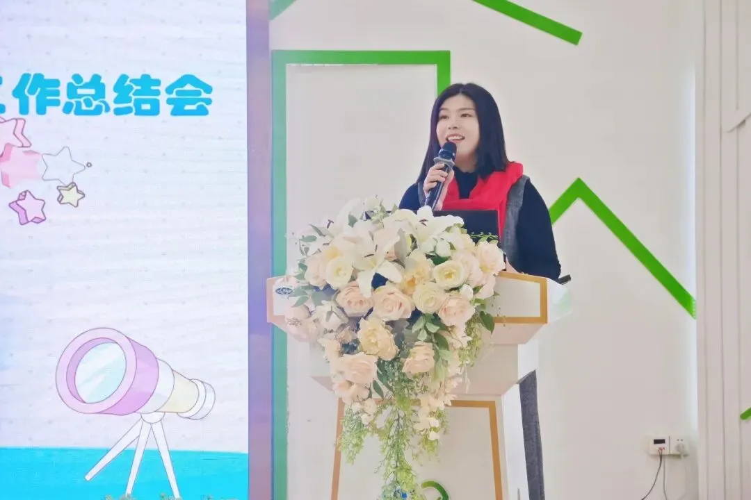 会议伊始,柯淑满园长代表领导班子作学期总结。她围绕党建、安全、保教、后勤、家园共育五大板块汇报学期成果,同时,还点出了教师专业发展不均、家校沟通待优化、部分工作精细化不足等问题,明确2026年五大发力方向,为新学期指明路径。